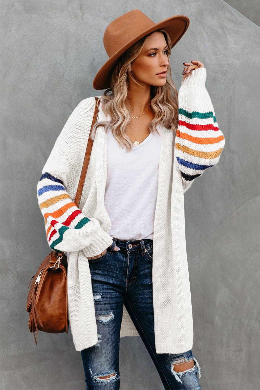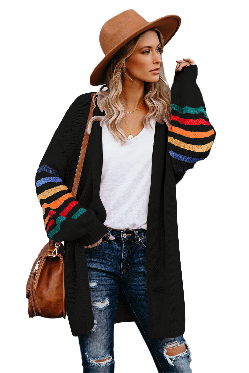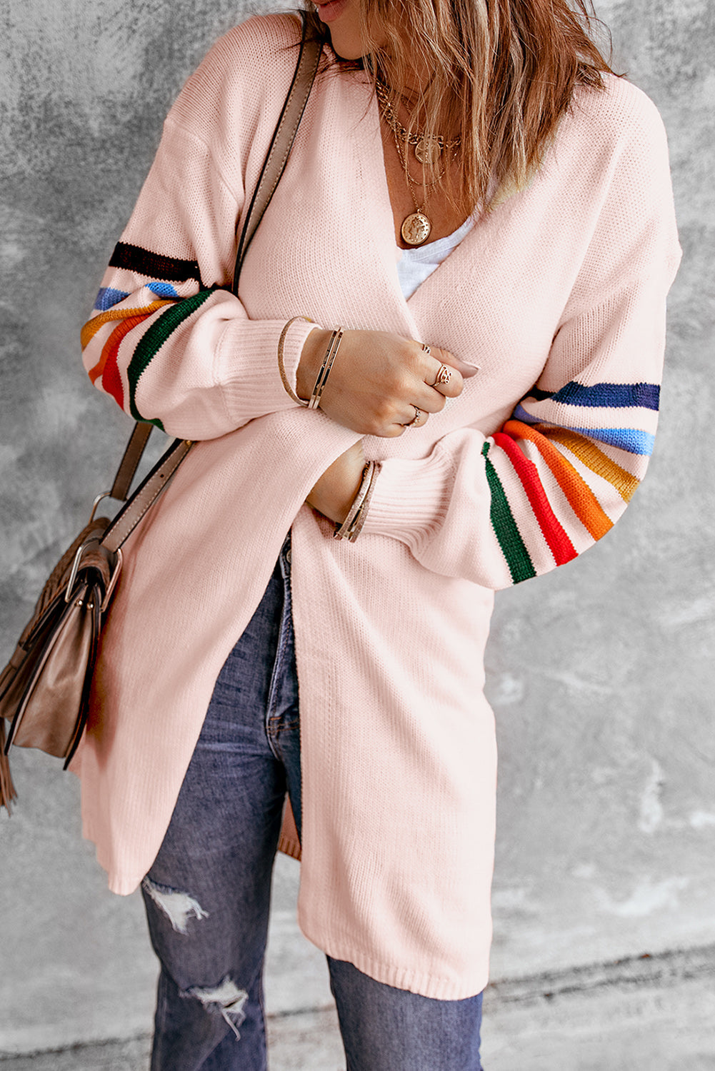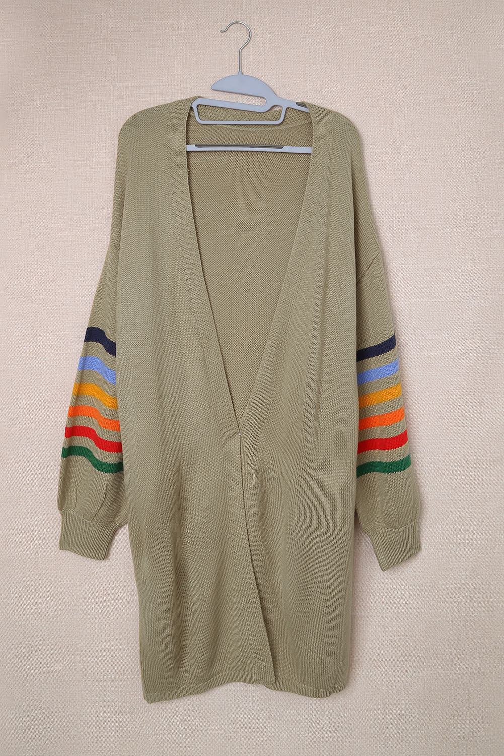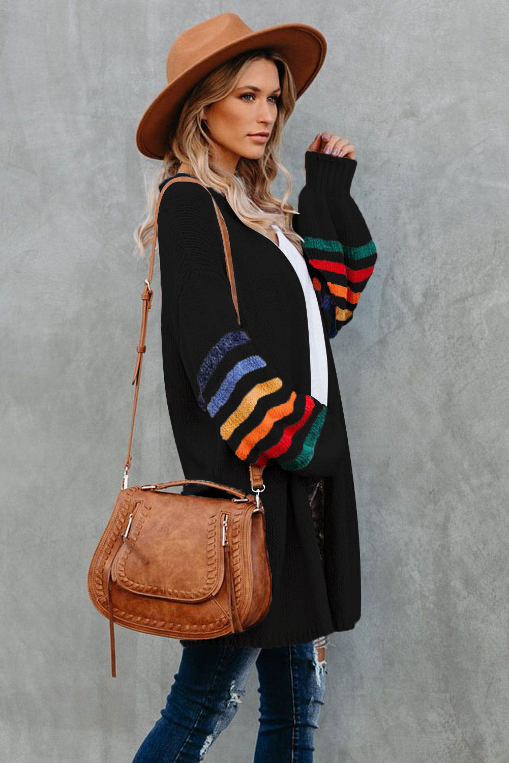 Add a touch of style to your wardrobe with the Striped Balloon Sleeve Cardigan.