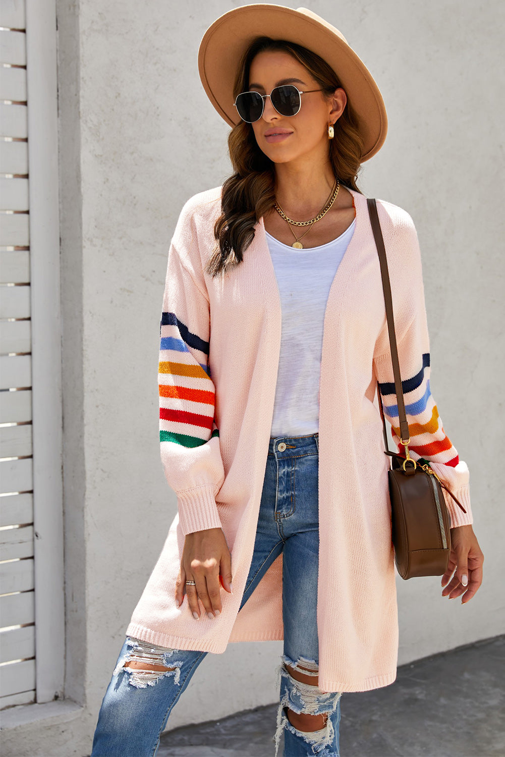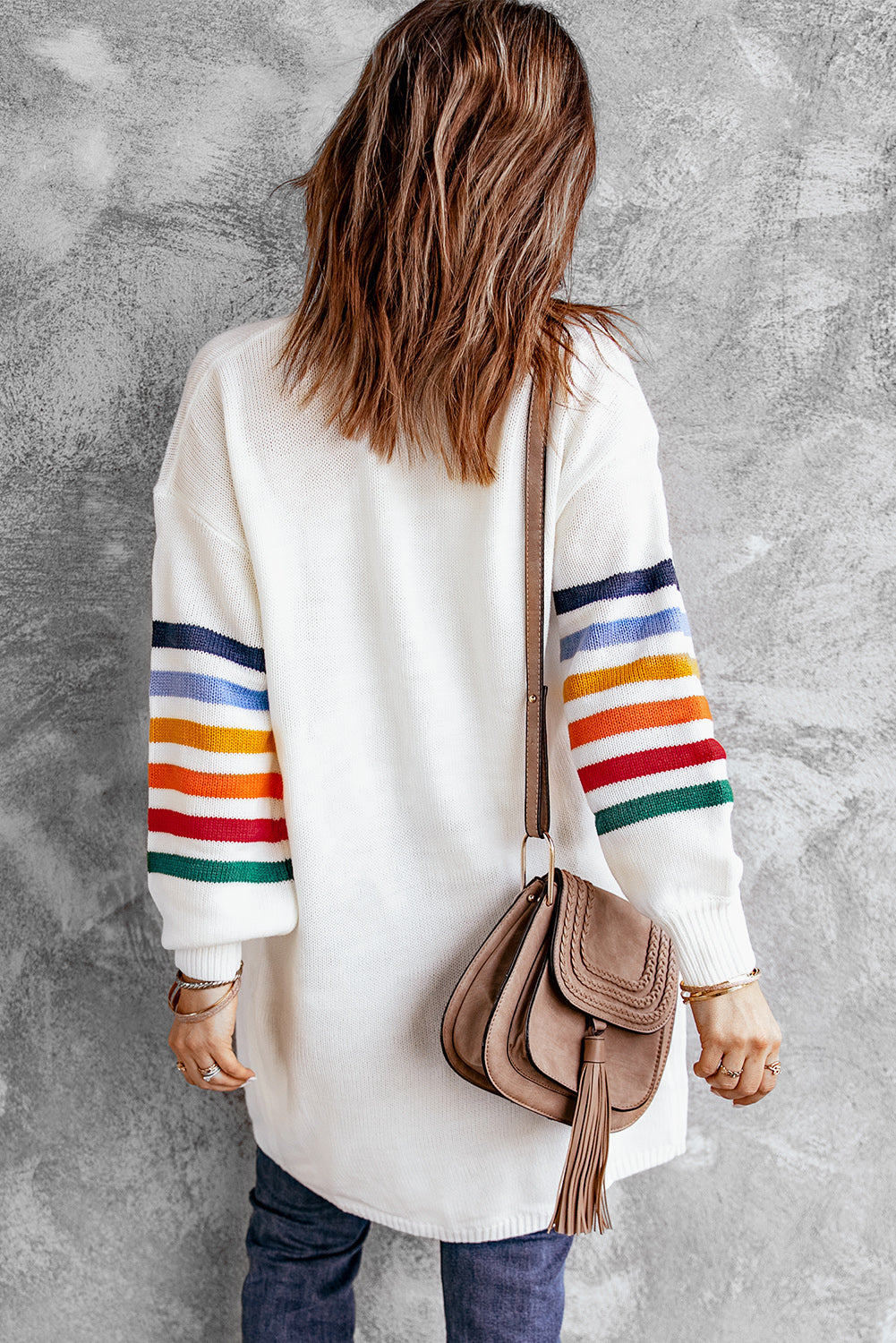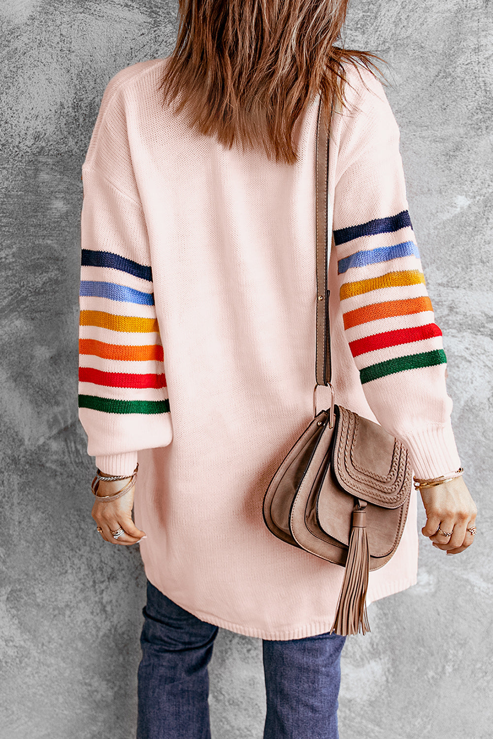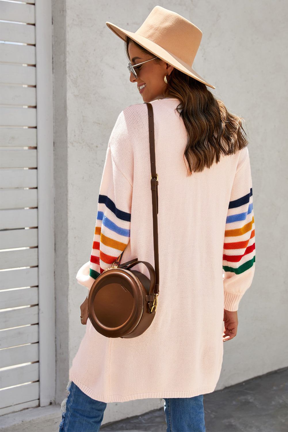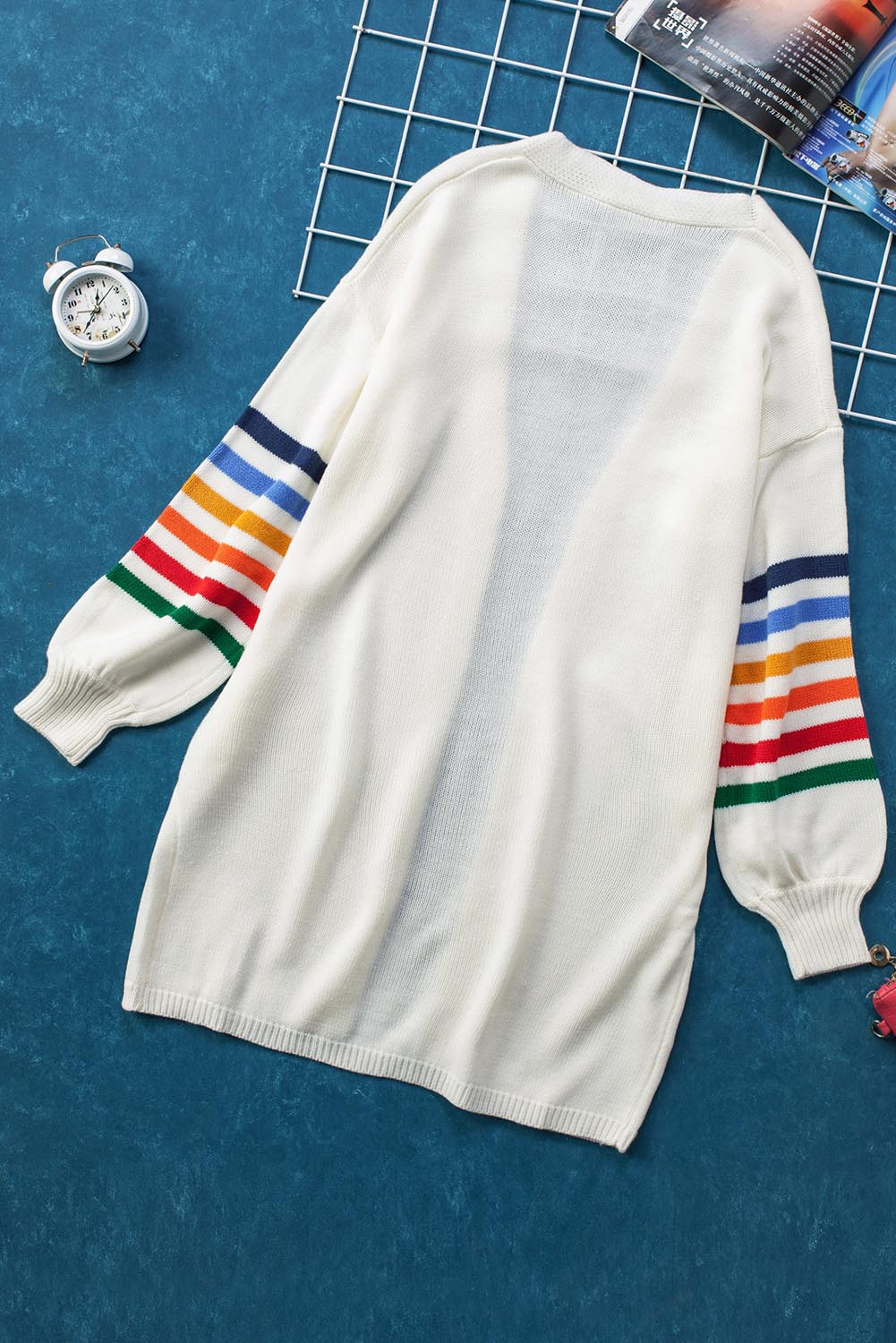 Add a touch of style to your wardrobe with the Striped Balloon Sleeve Cardigan.