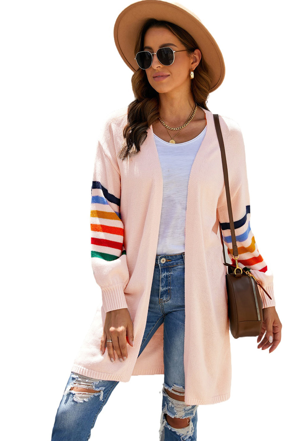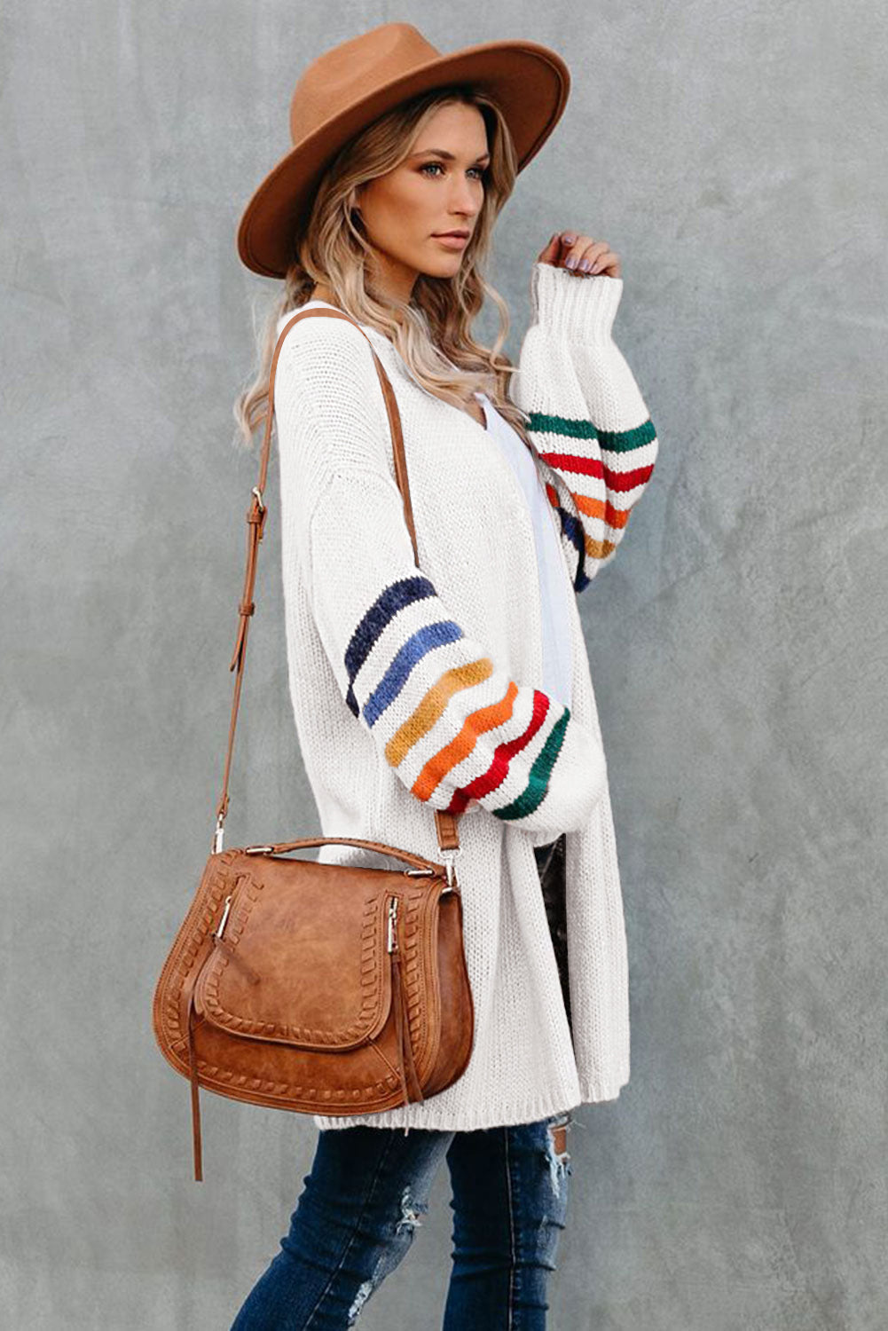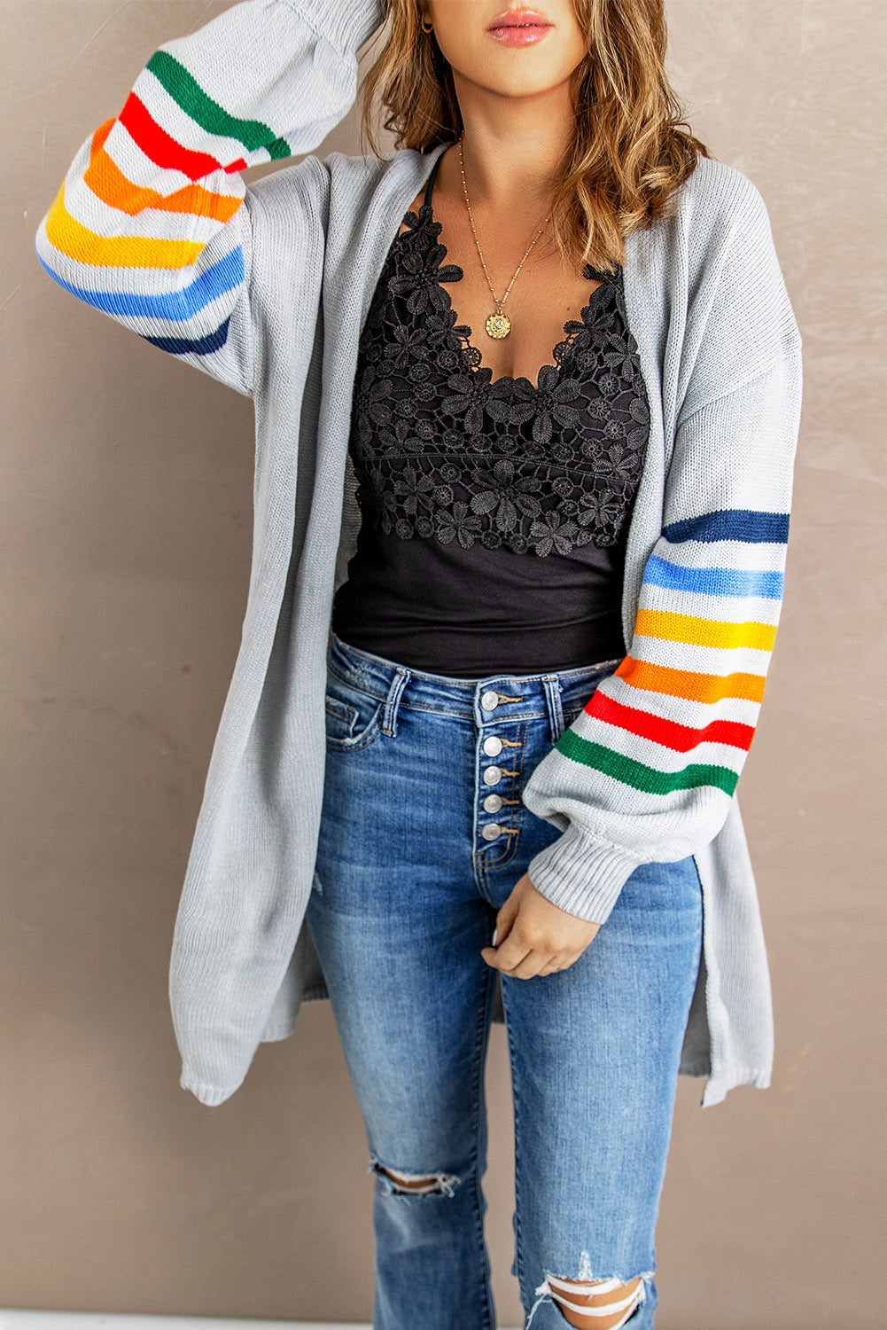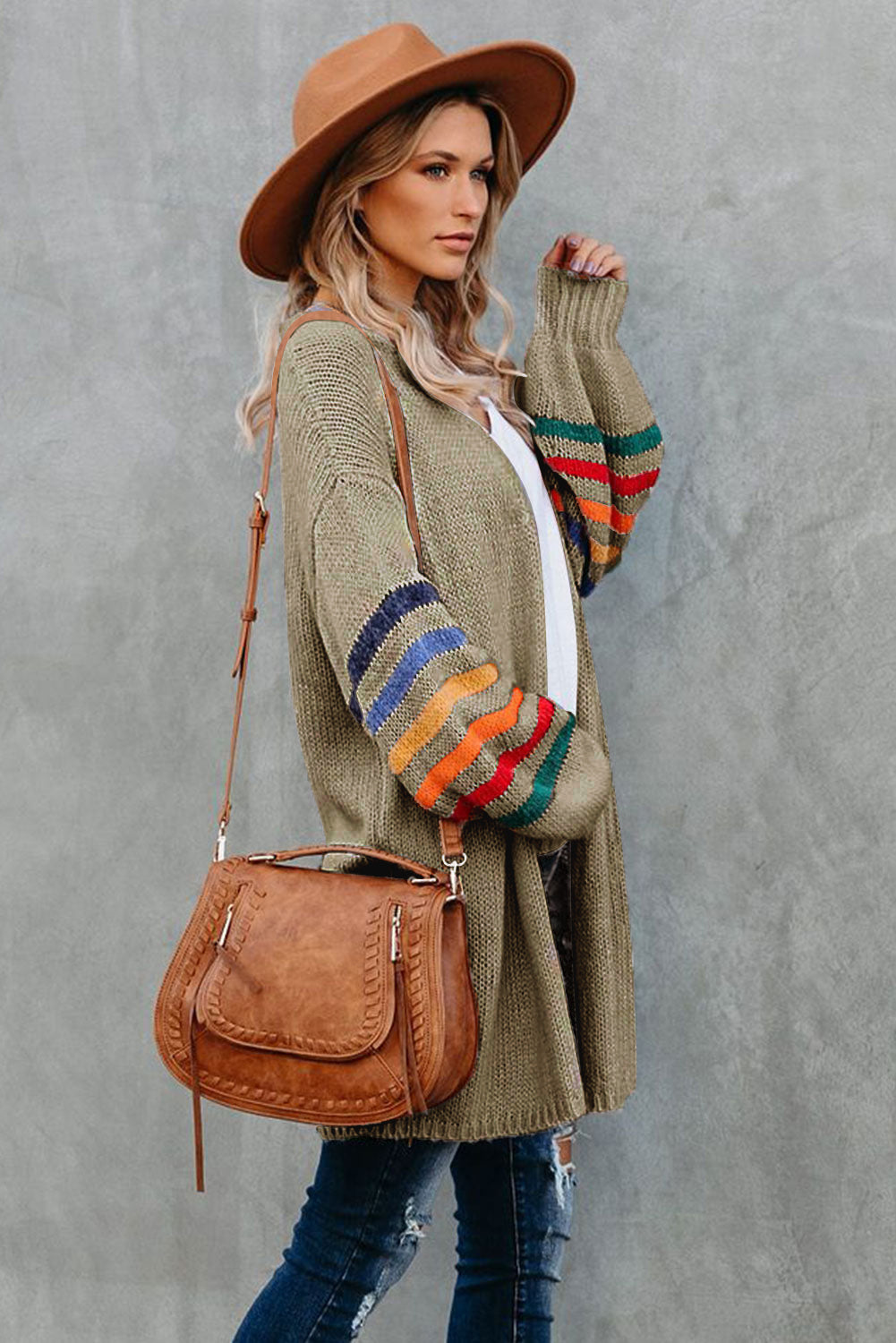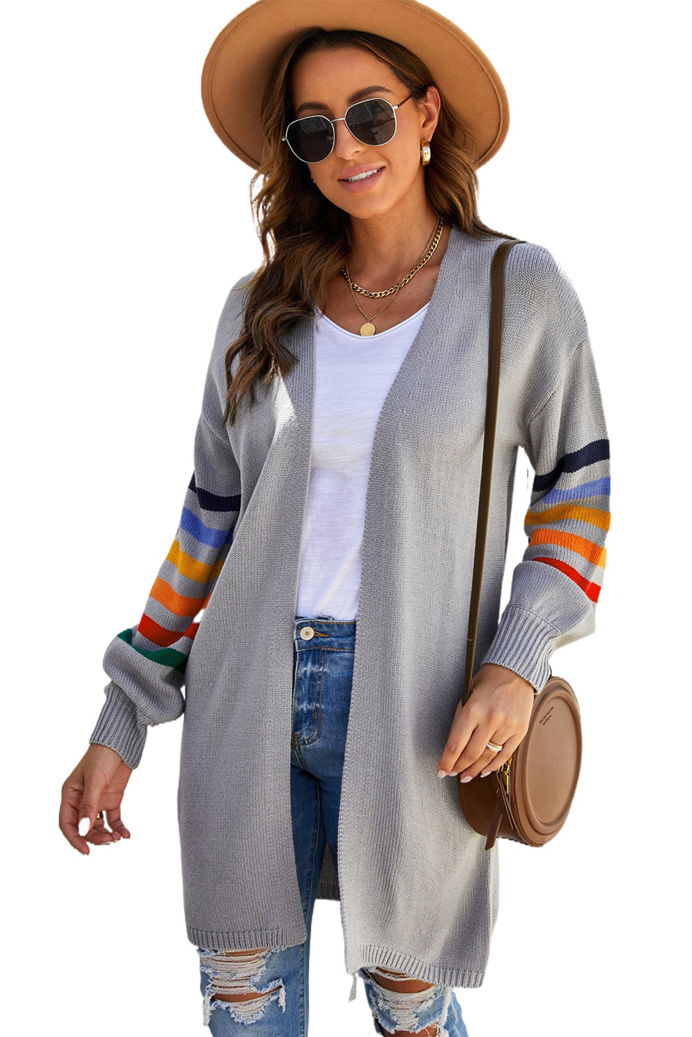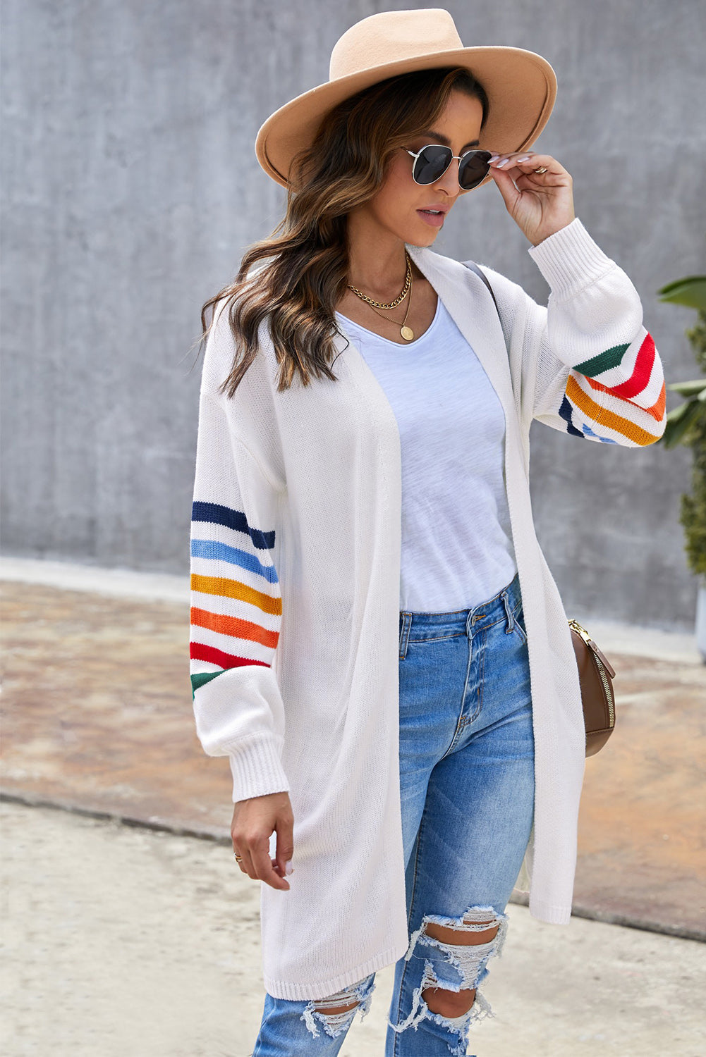 Add a touch of style to your wardrobe with the Striped Balloon Sleeve Cardigan.