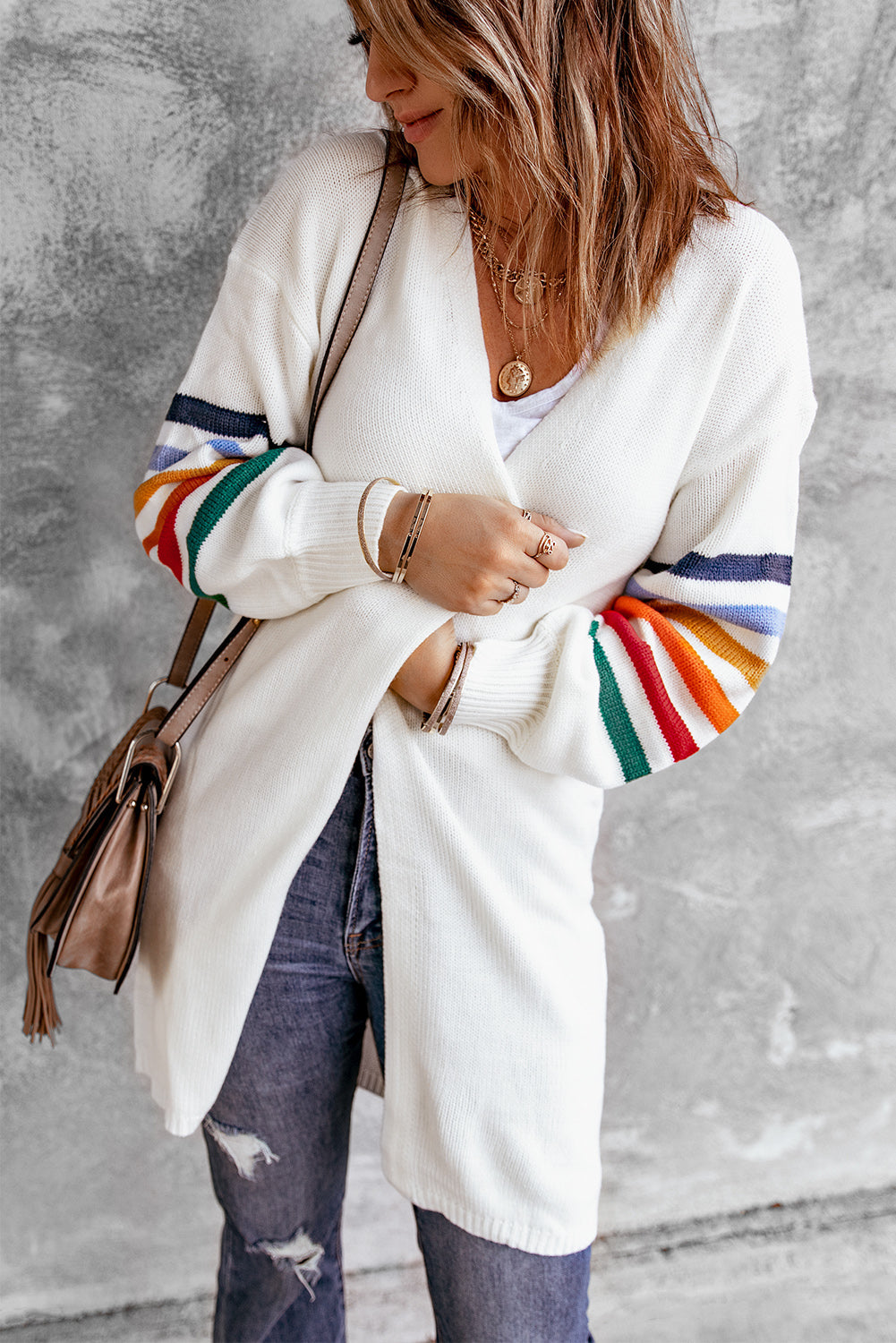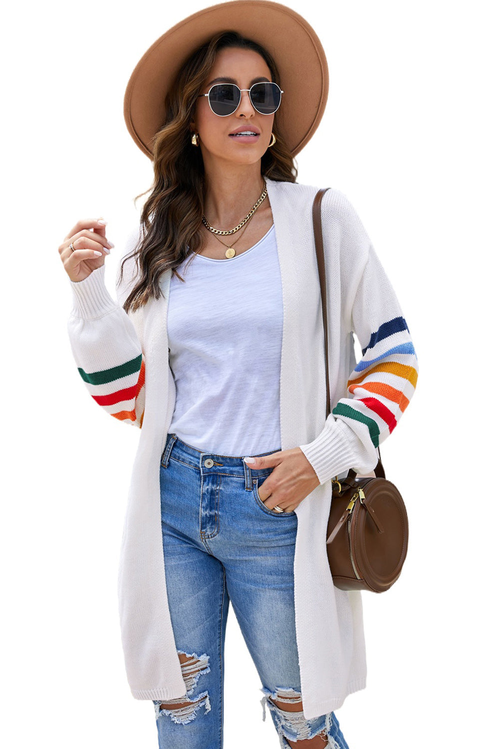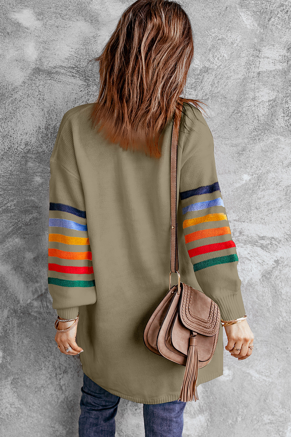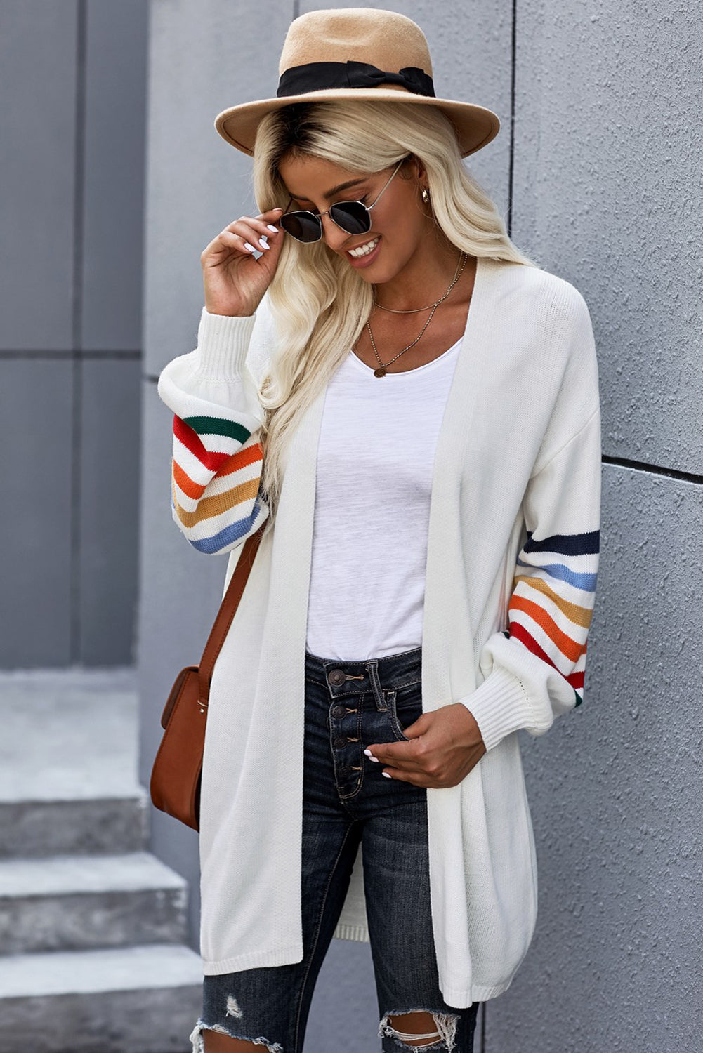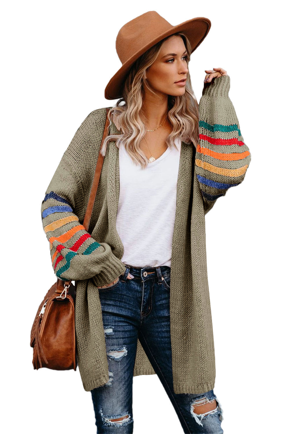 Add a touch of style to your wardrobe with the Striped Balloon Sleeve Cardigan.