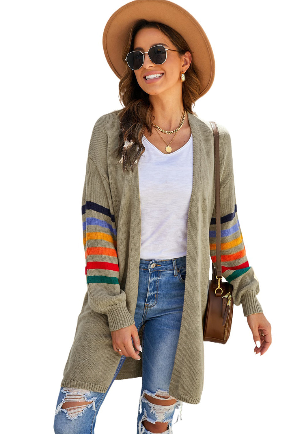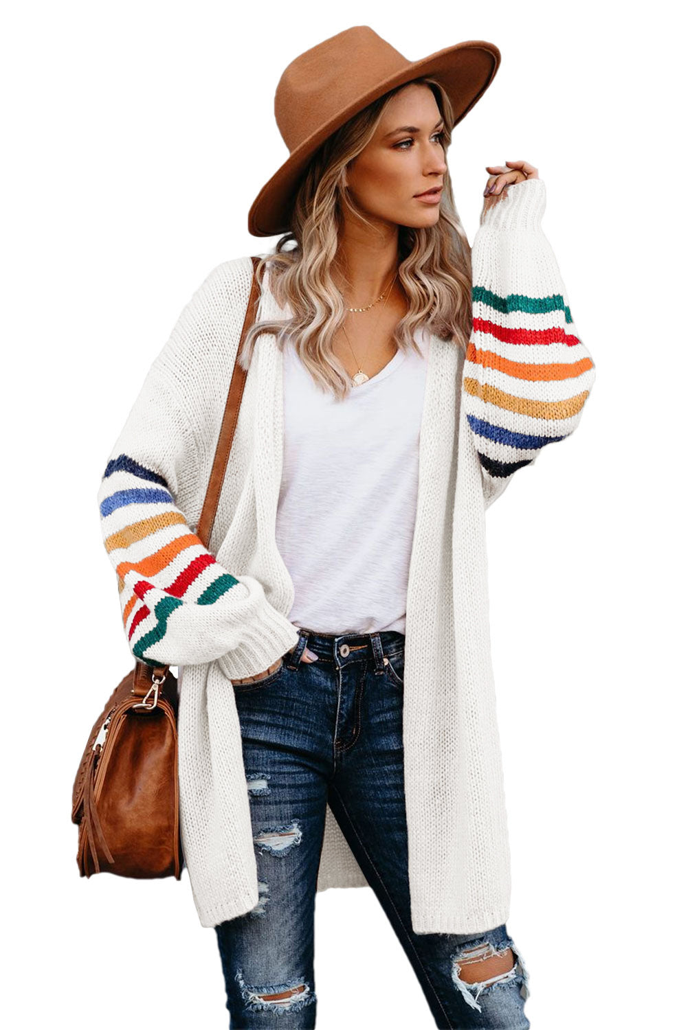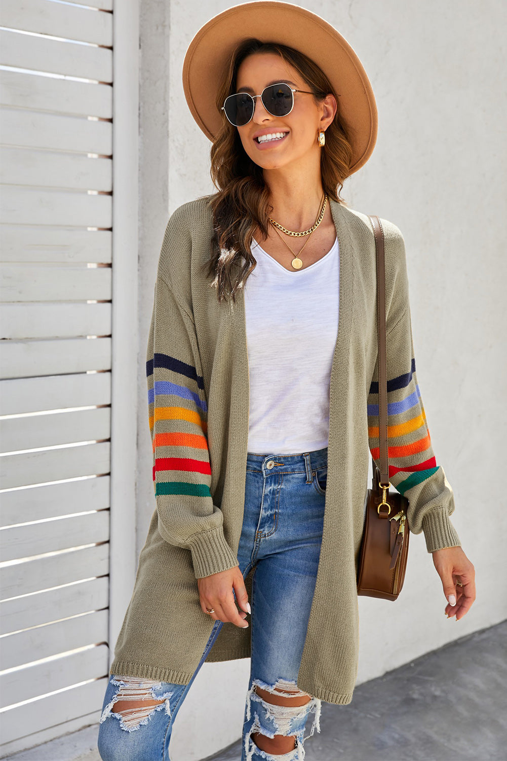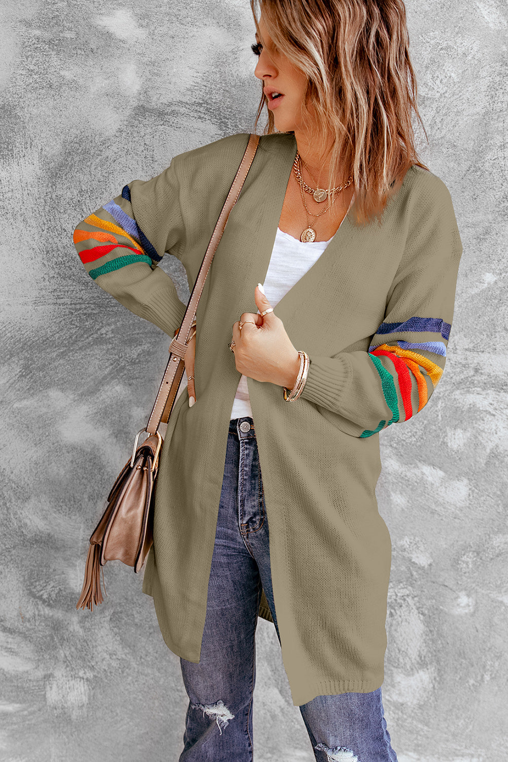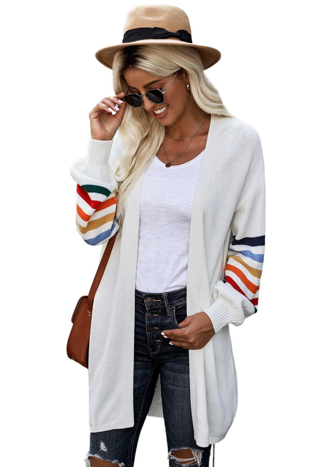 Add a touch of style to your wardrobe with the Striped Balloon Sleeve Cardigan.