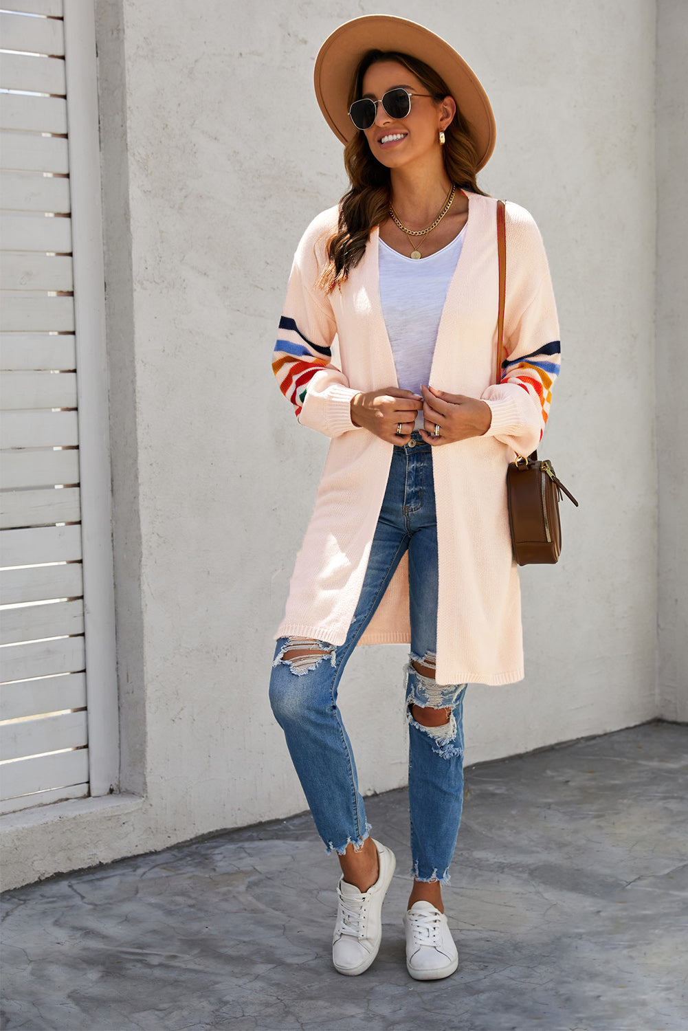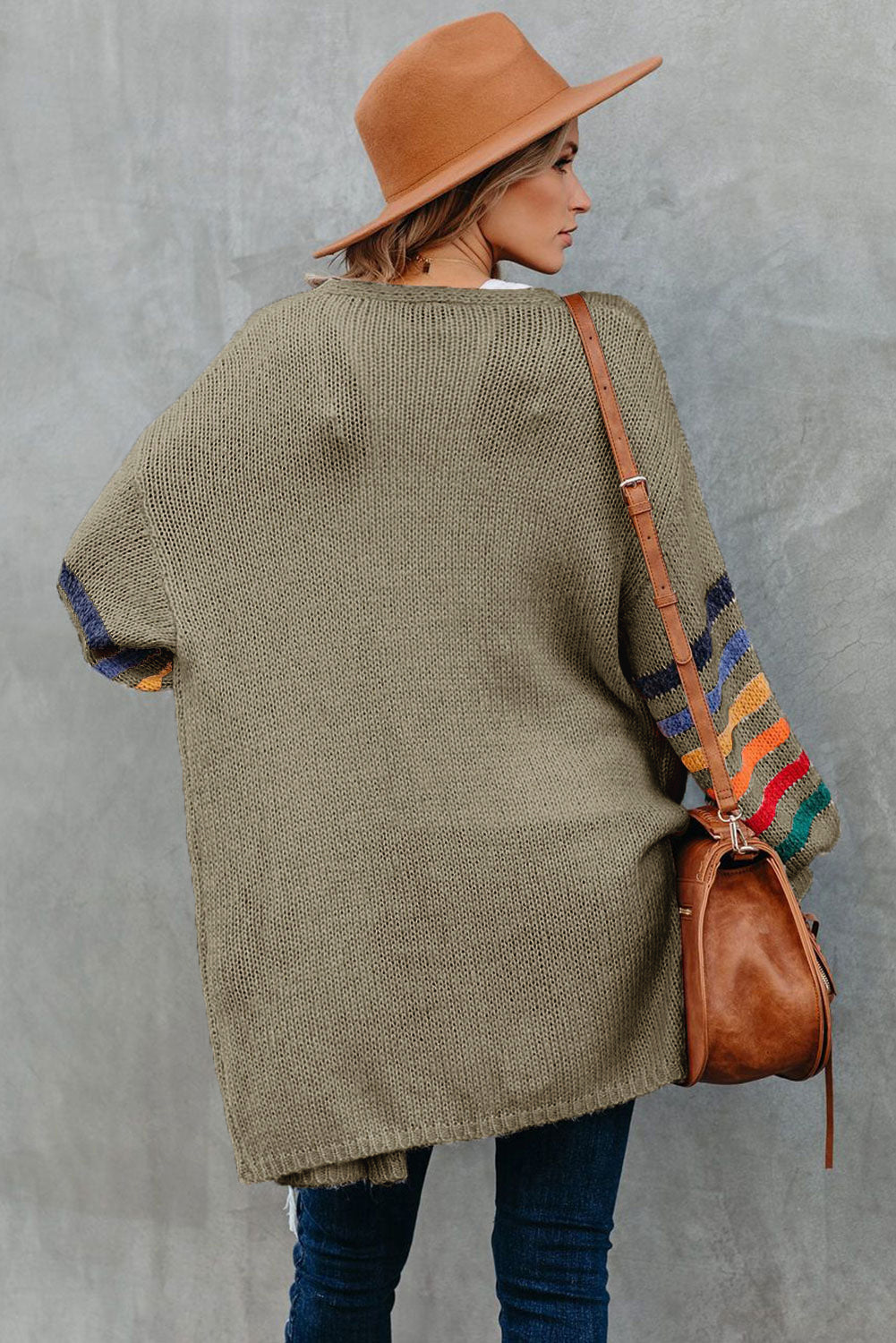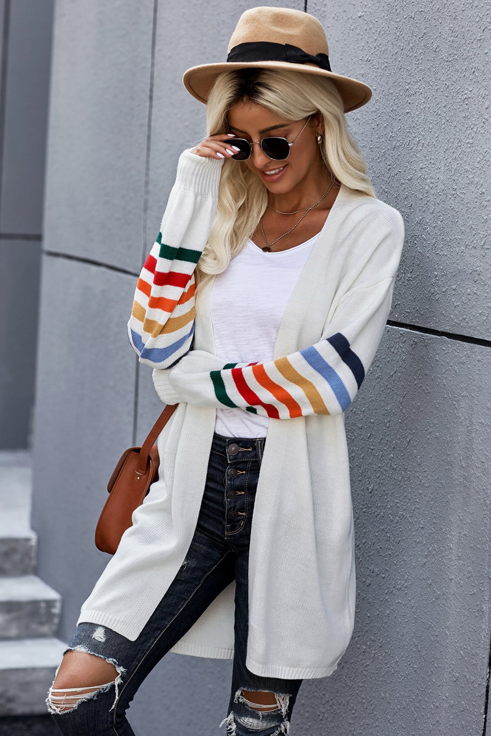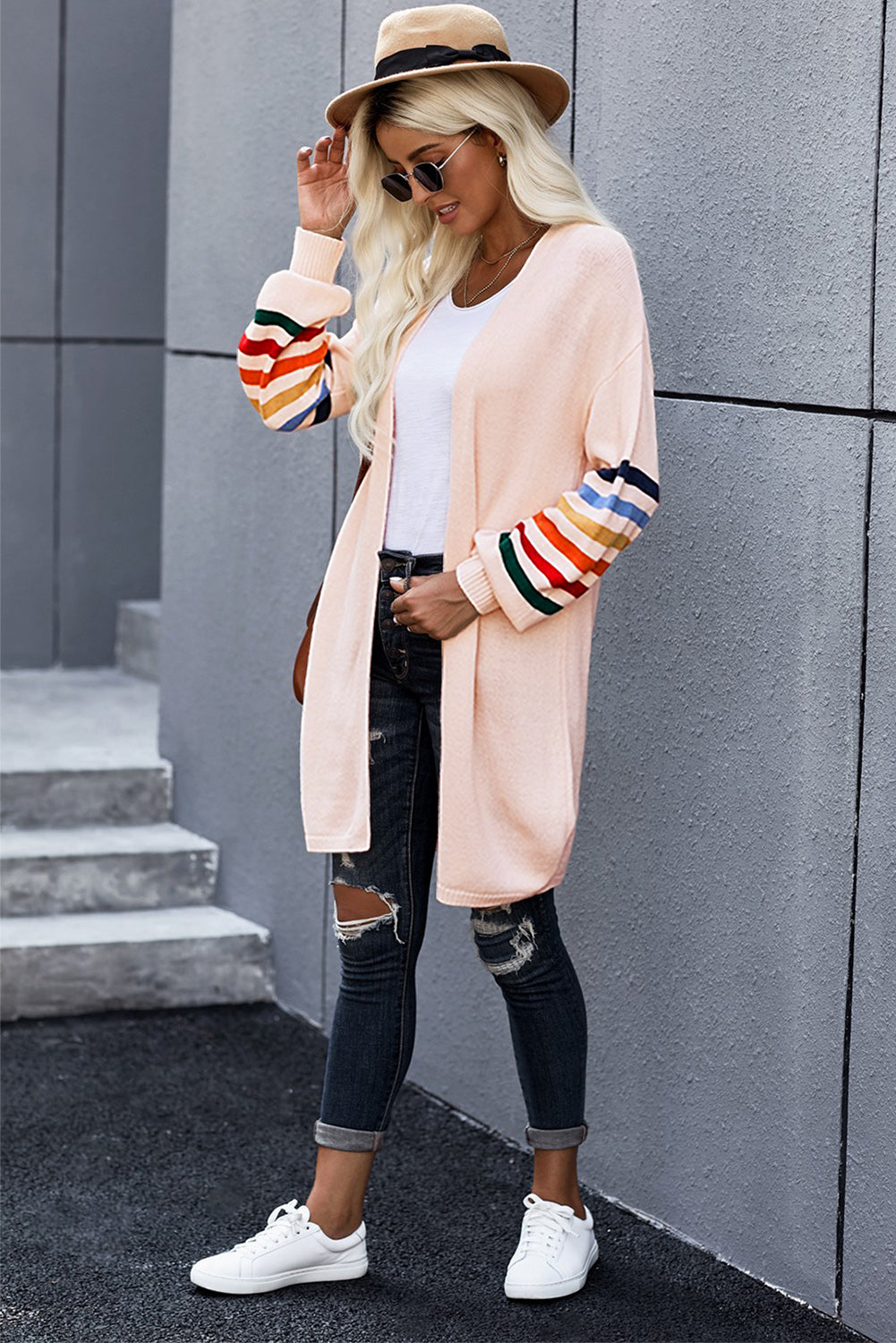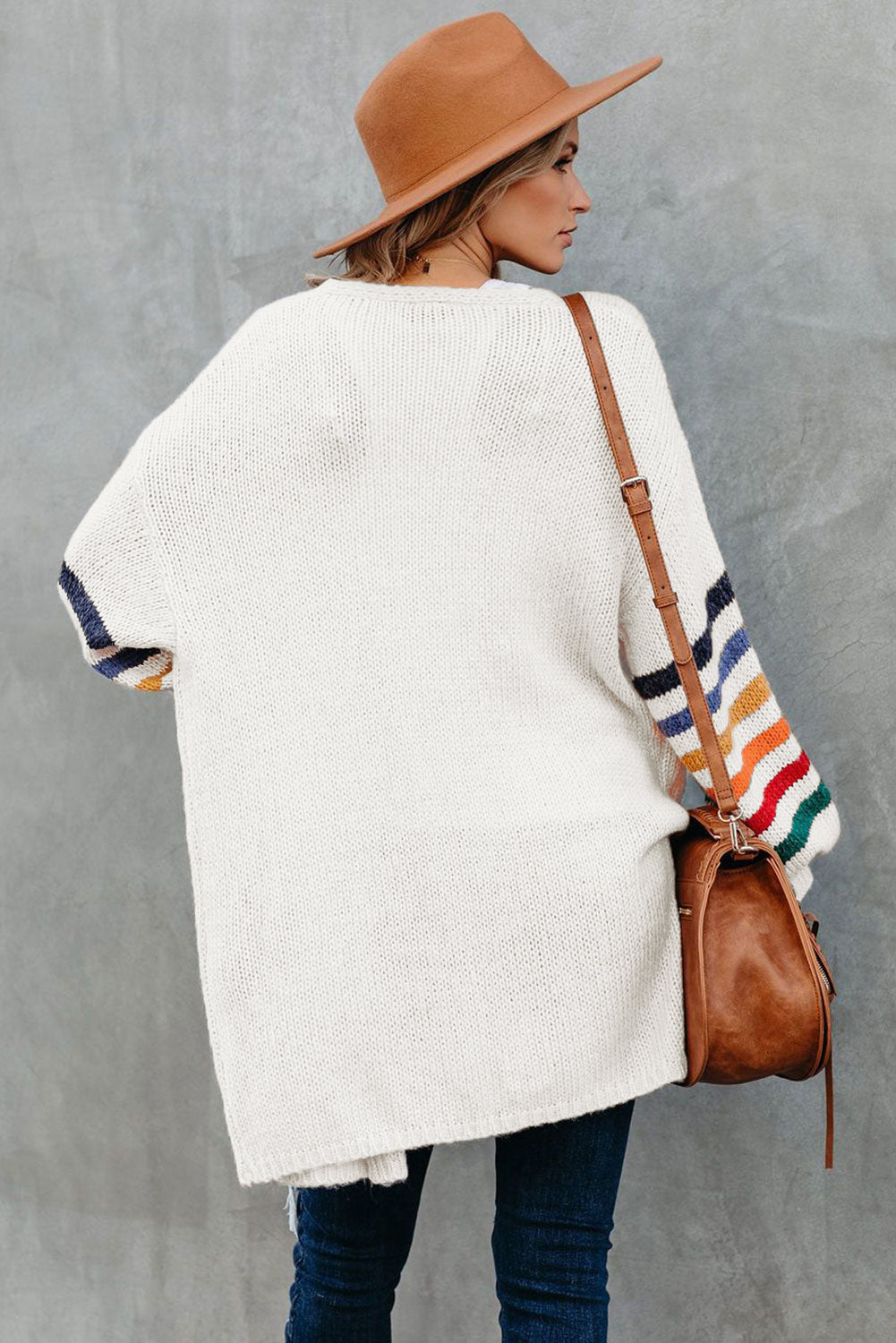 Add a touch of style to your wardrobe with the Striped Balloon Sleeve Cardigan.