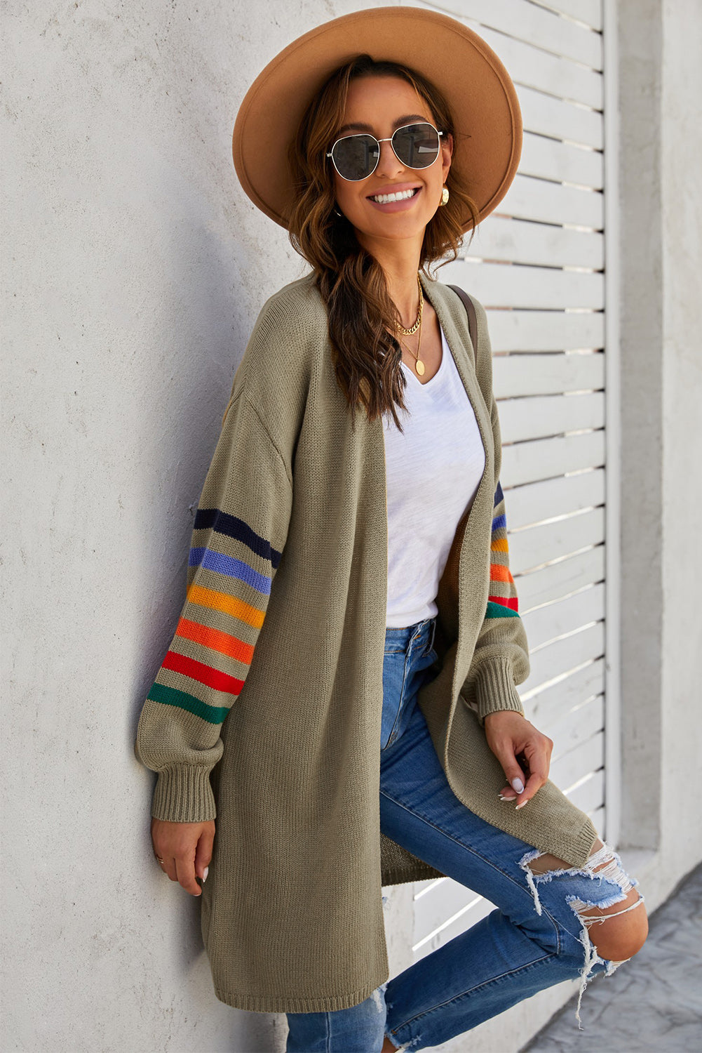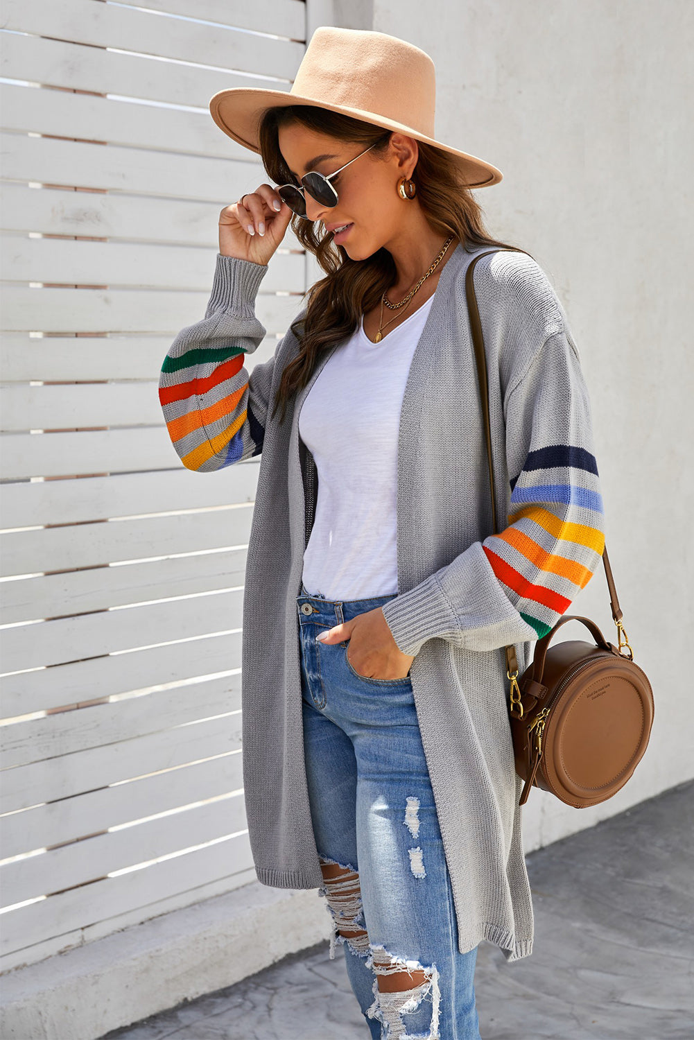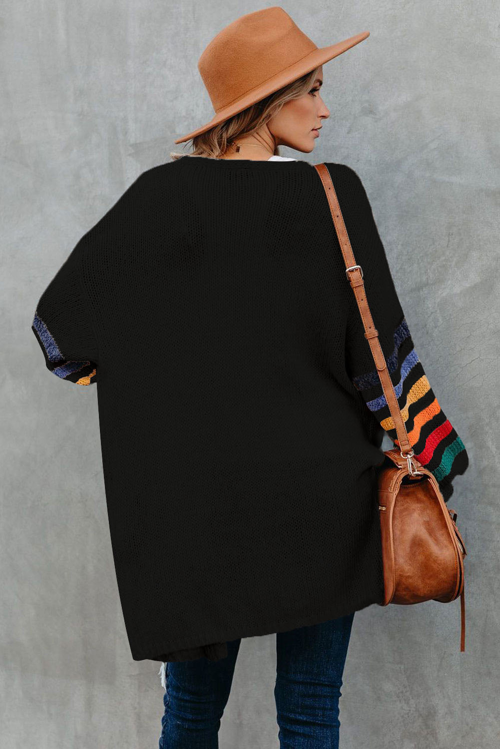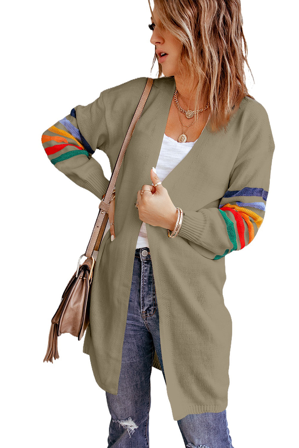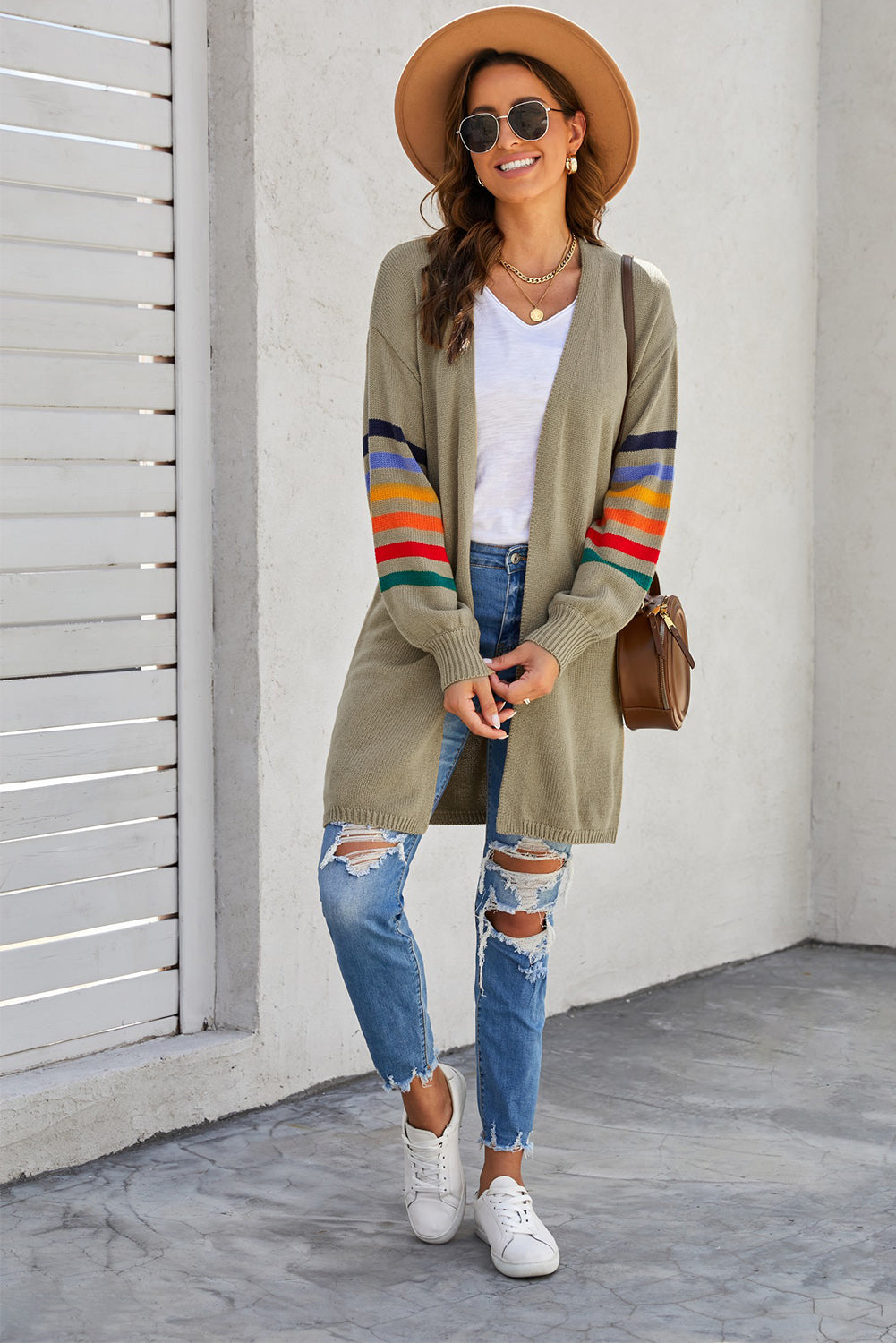 Add a touch of style to your wardrobe with the Striped Balloon Sleeve Cardigan.