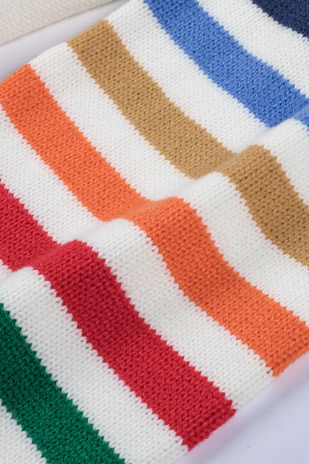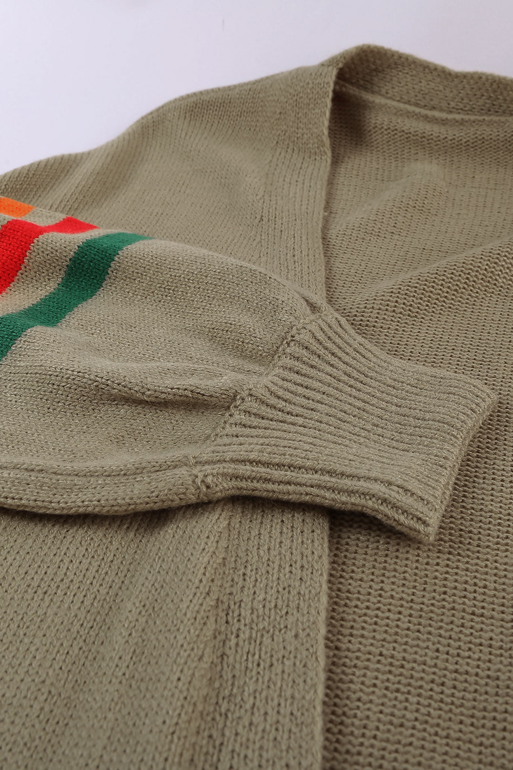 Introducing the Striped Balloon Sleeve Cardigan. the perfect addition to your wardrobe! This cardigan is made from 100% acrylic. making it soft and comfortable to wear.
