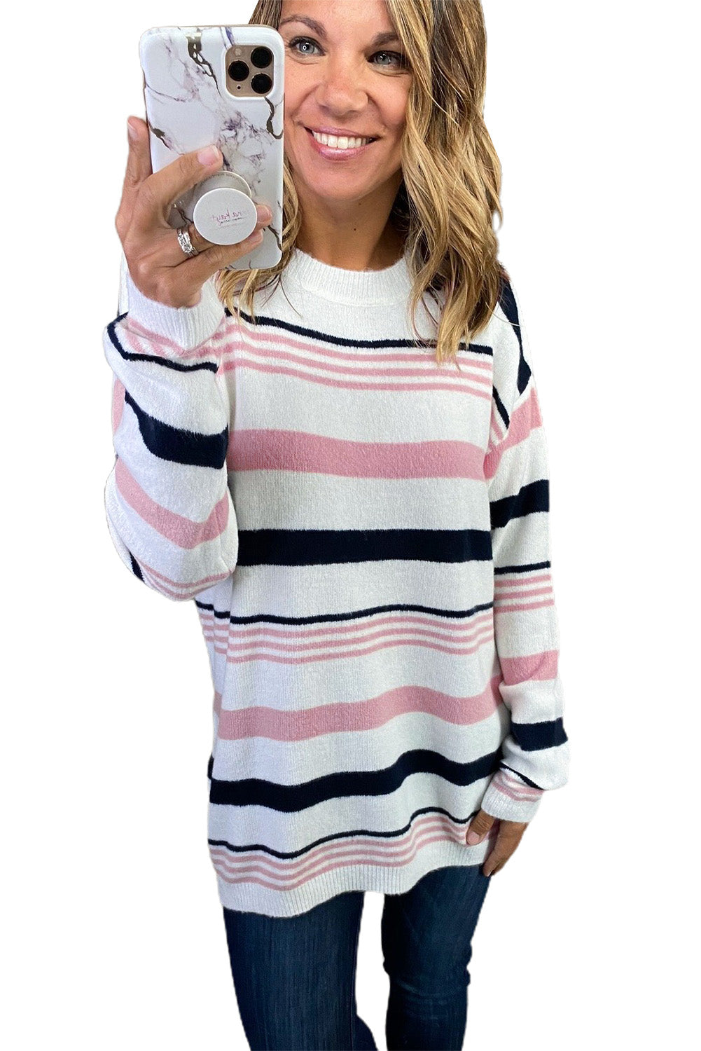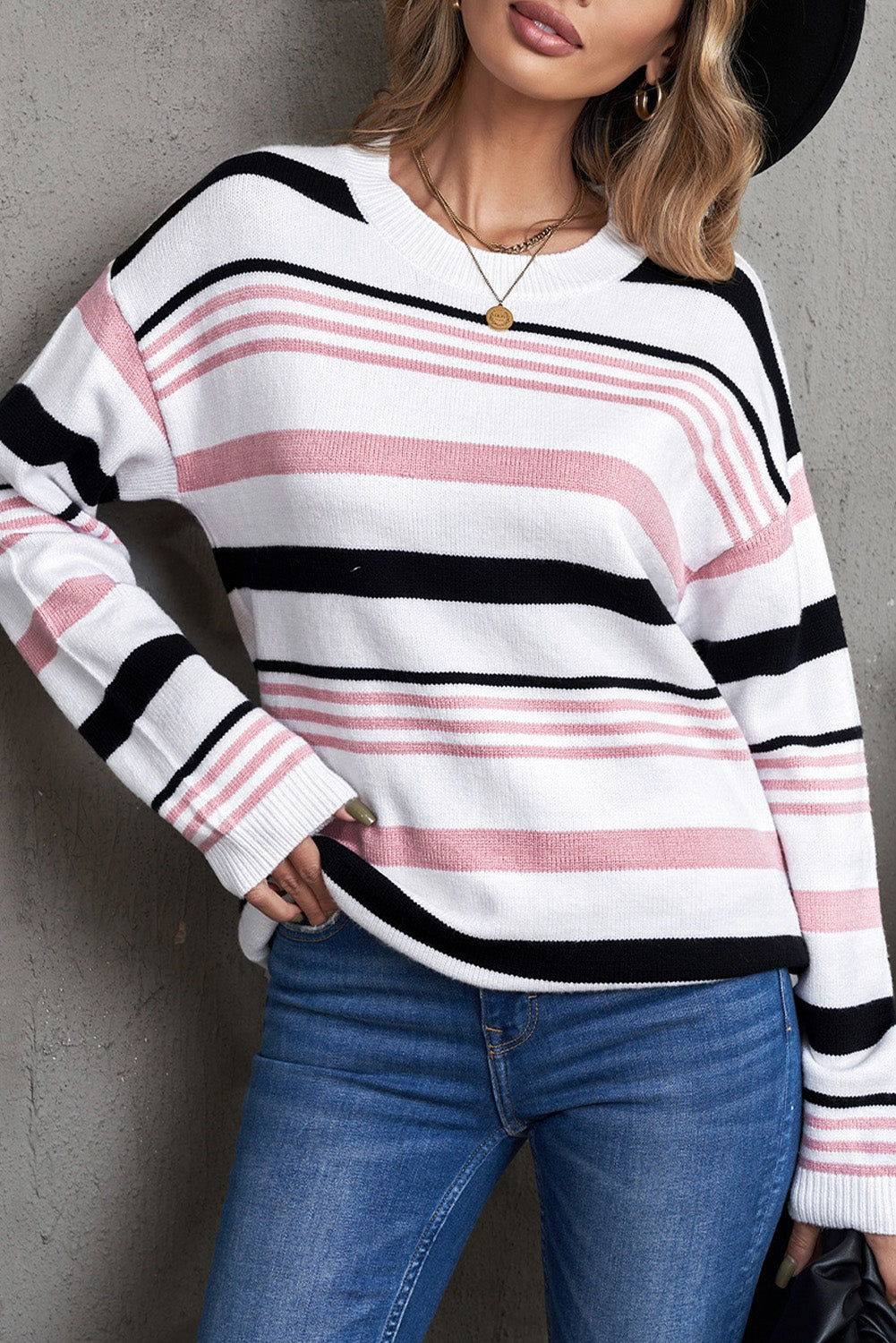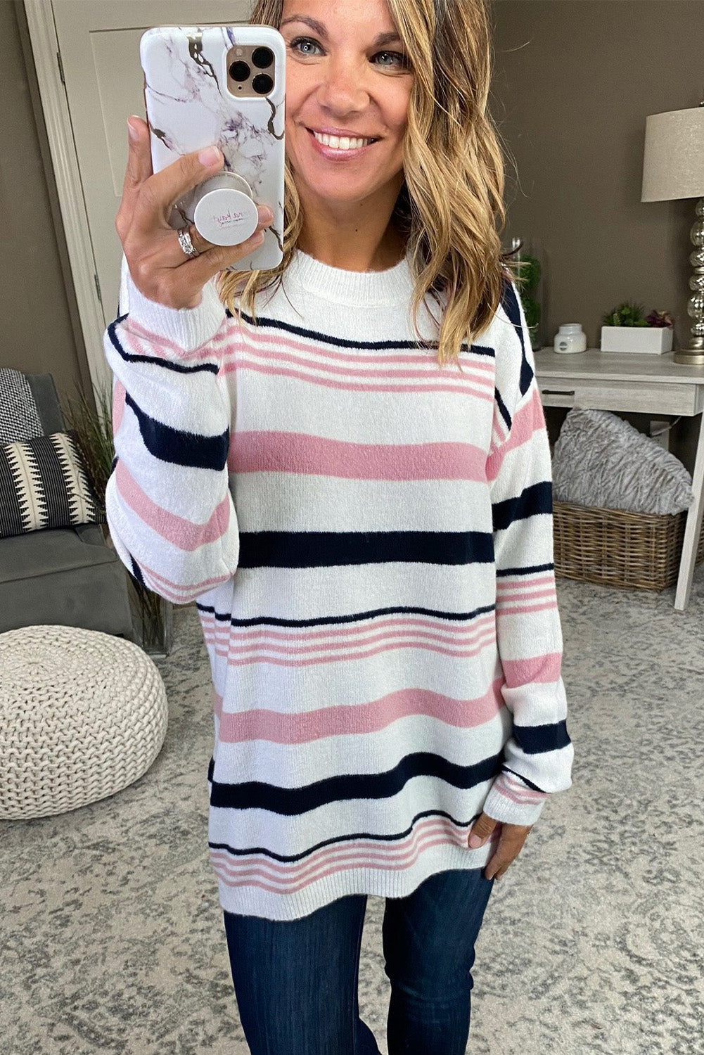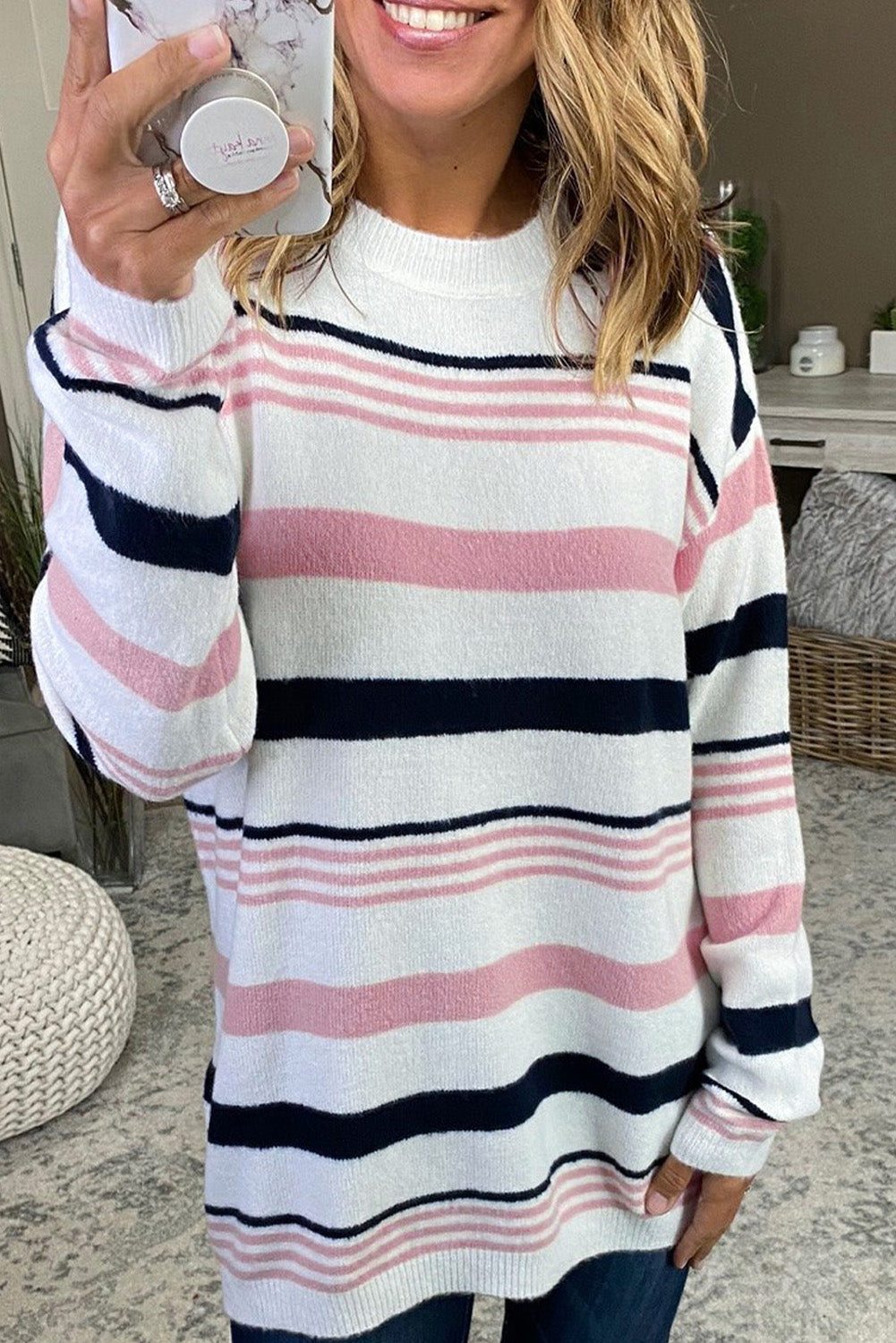 This Striped Crewneck Long Sleeve Sweater is the perfect addition to your wardrobe.