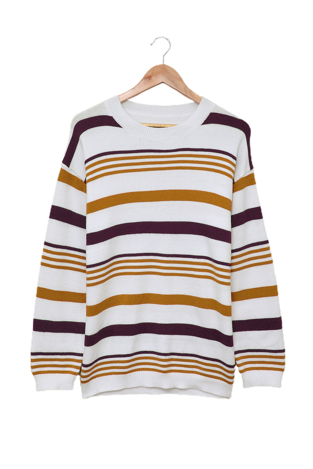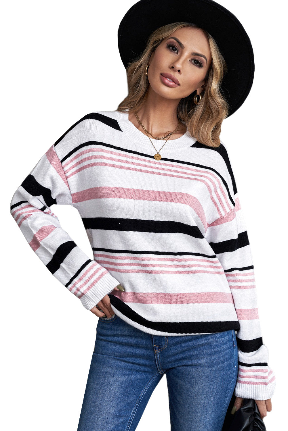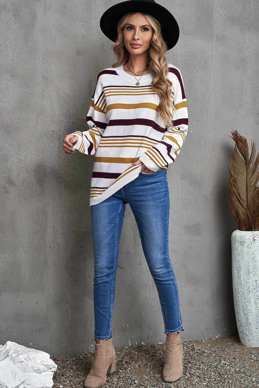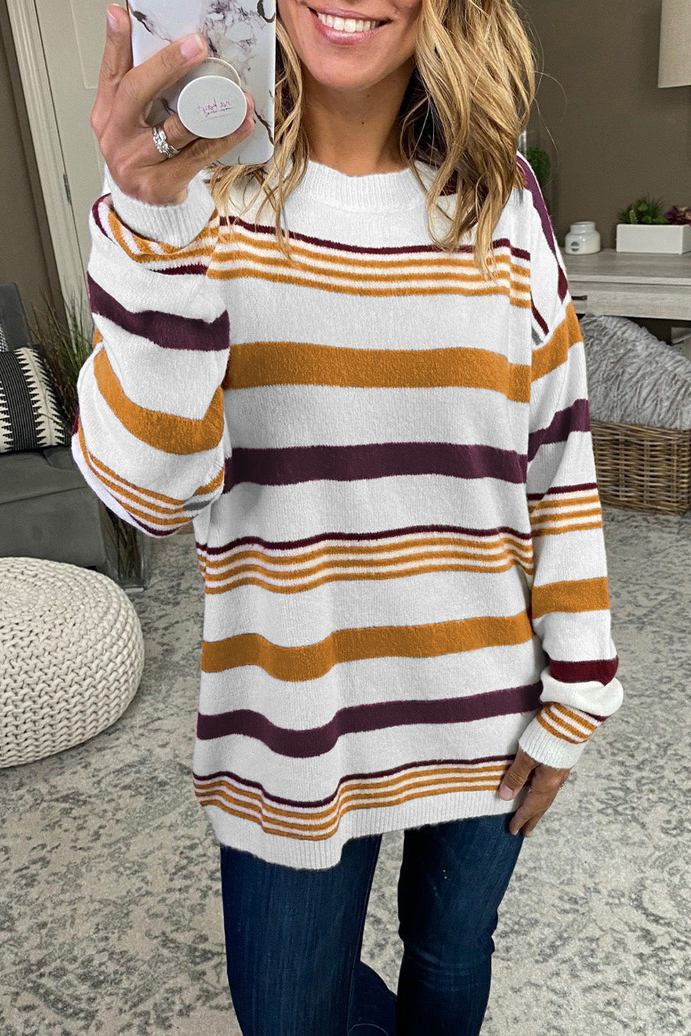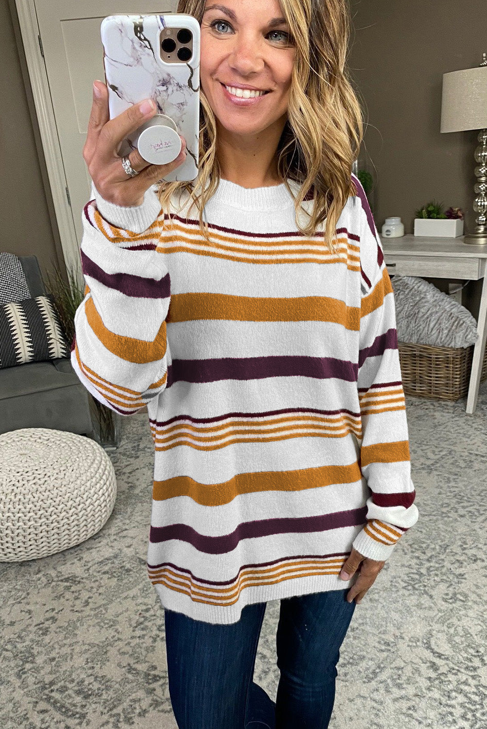 This Striped Crewneck Long Sleeve Sweater is the perfect addition to your wardrobe.