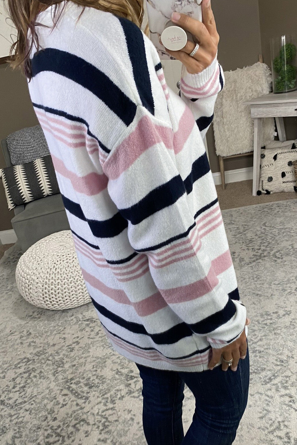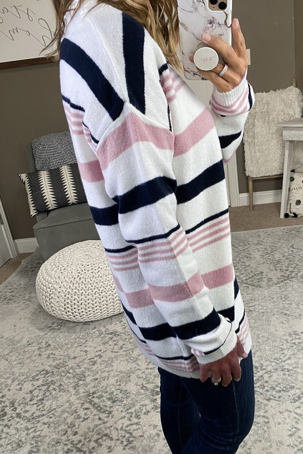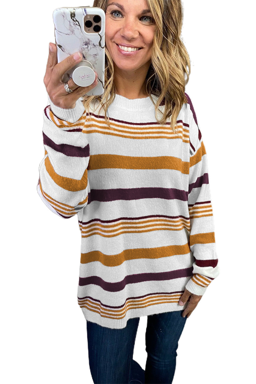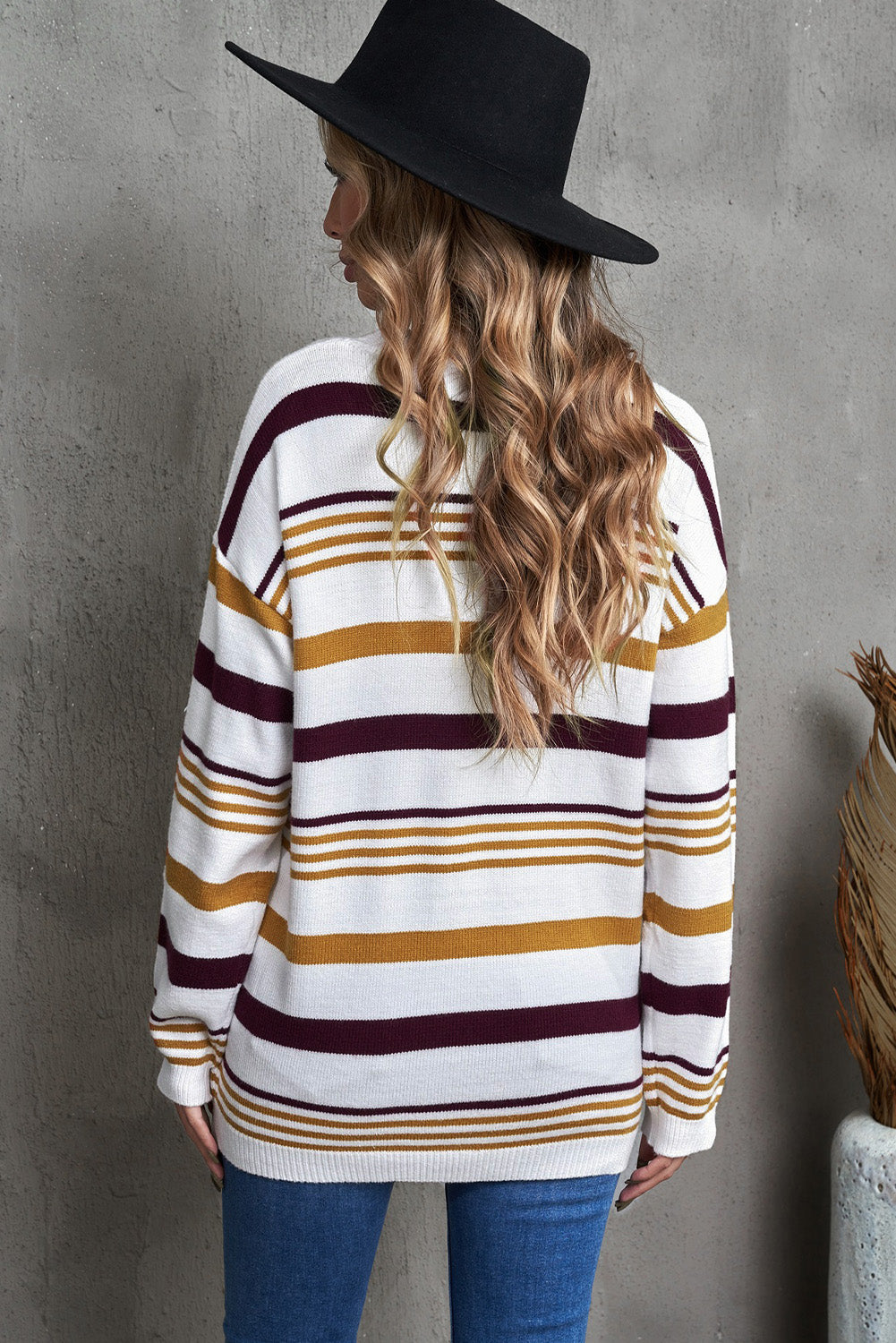 This Striped Crewneck Long Sleeve Sweater is the perfect addition to your wardrobe.