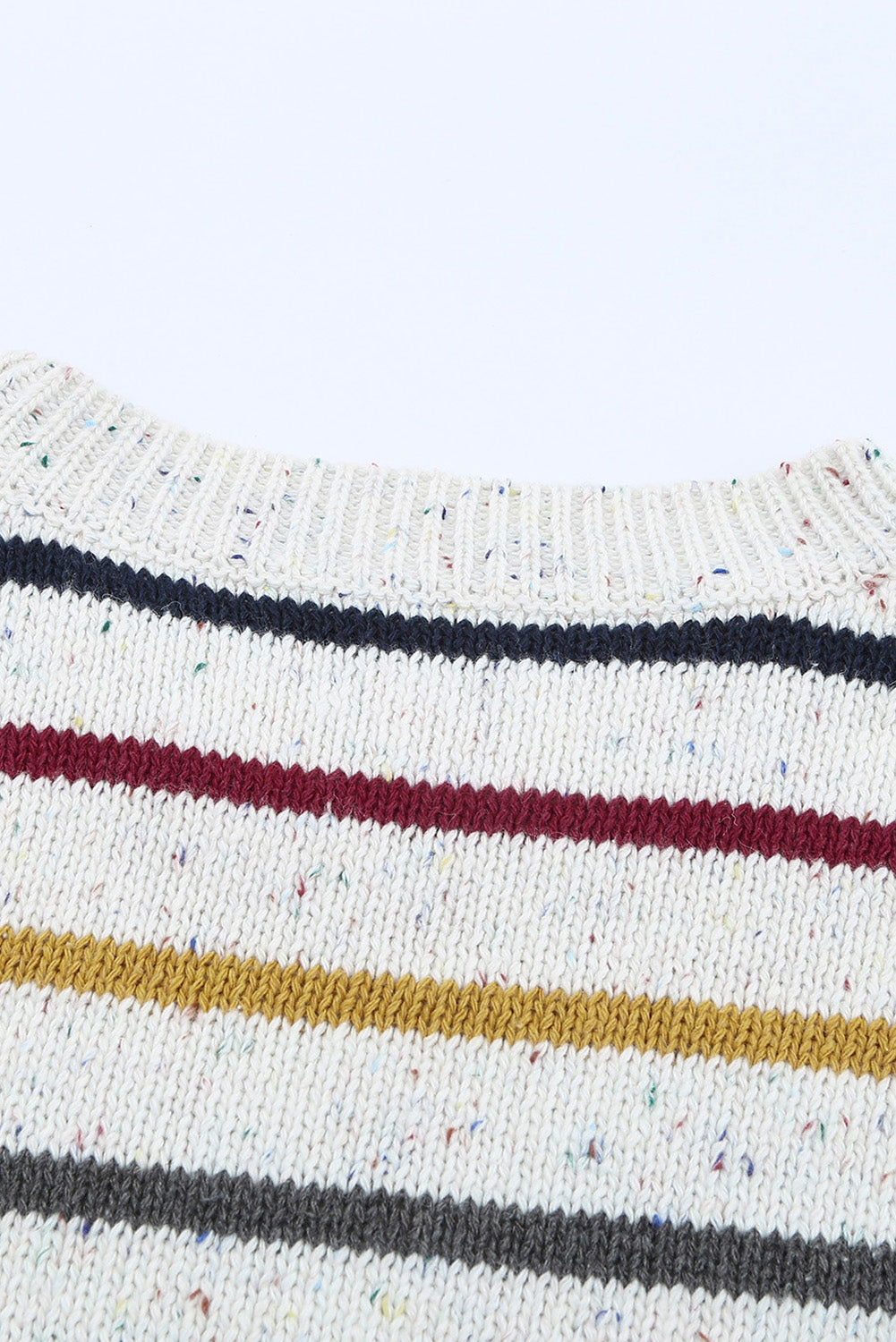 Introducing the Striped Drop Sleeve Crew Neck Knit Sweater. the perfect addition to your wardrobe this season.