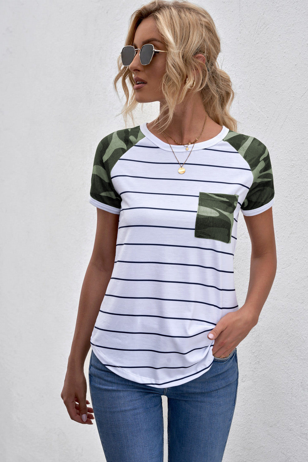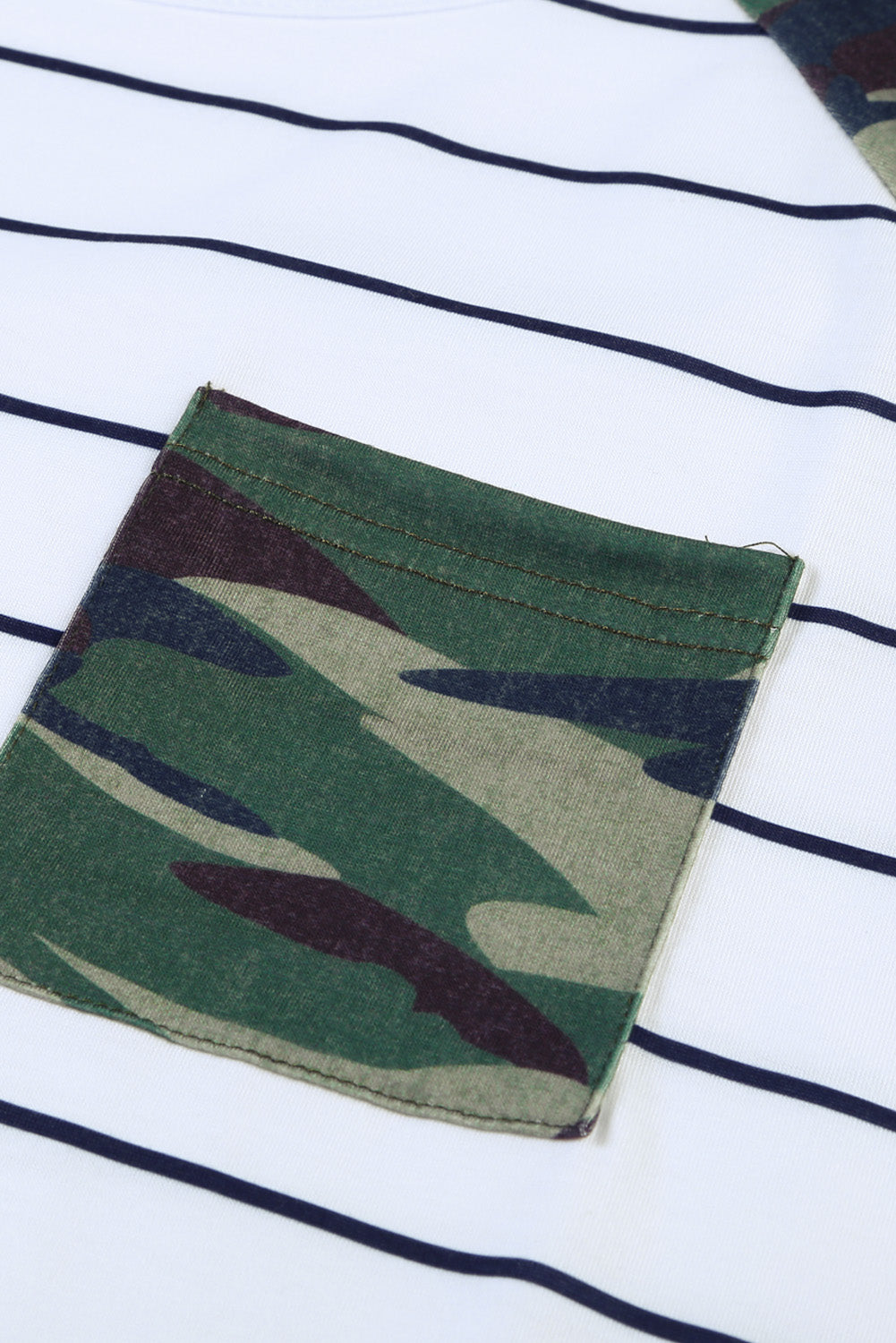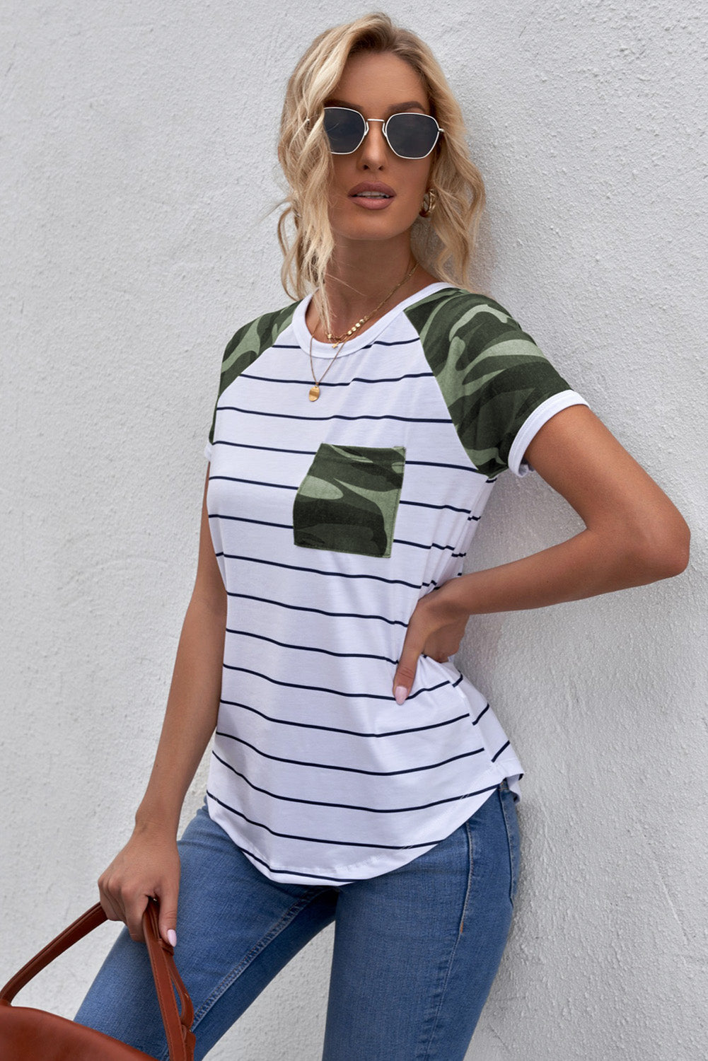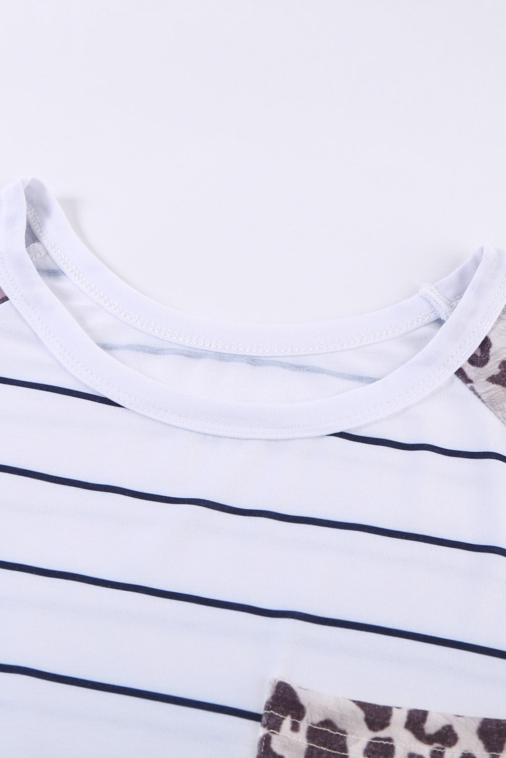 This Striped Leopard Pocketed Patch Tee is the perfect addition to your wardrobe.