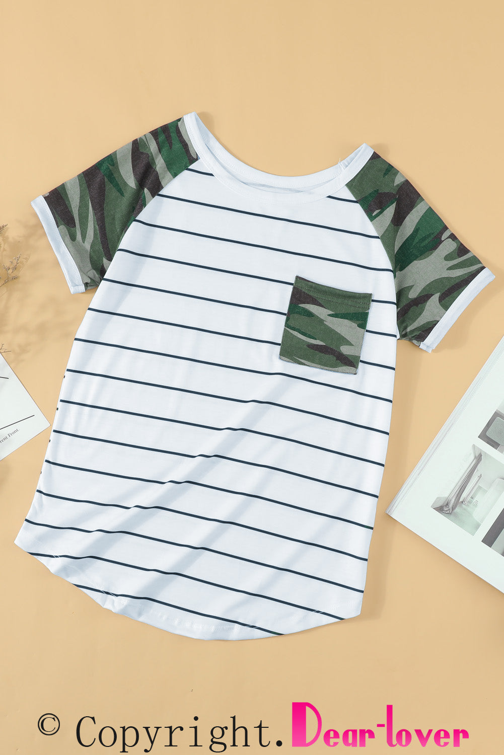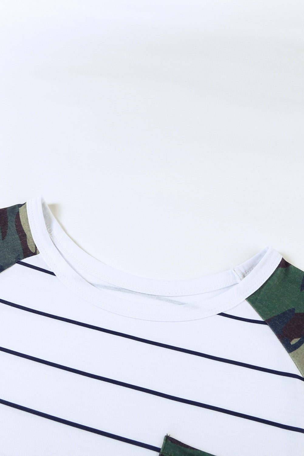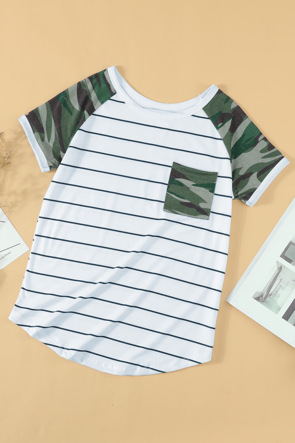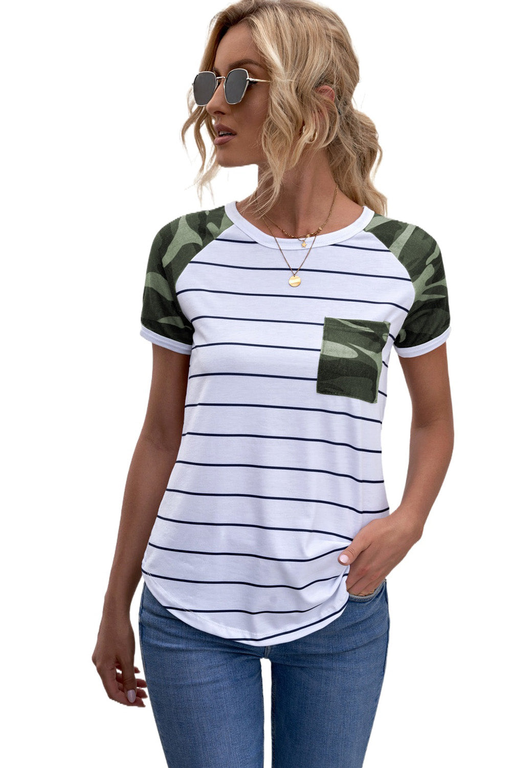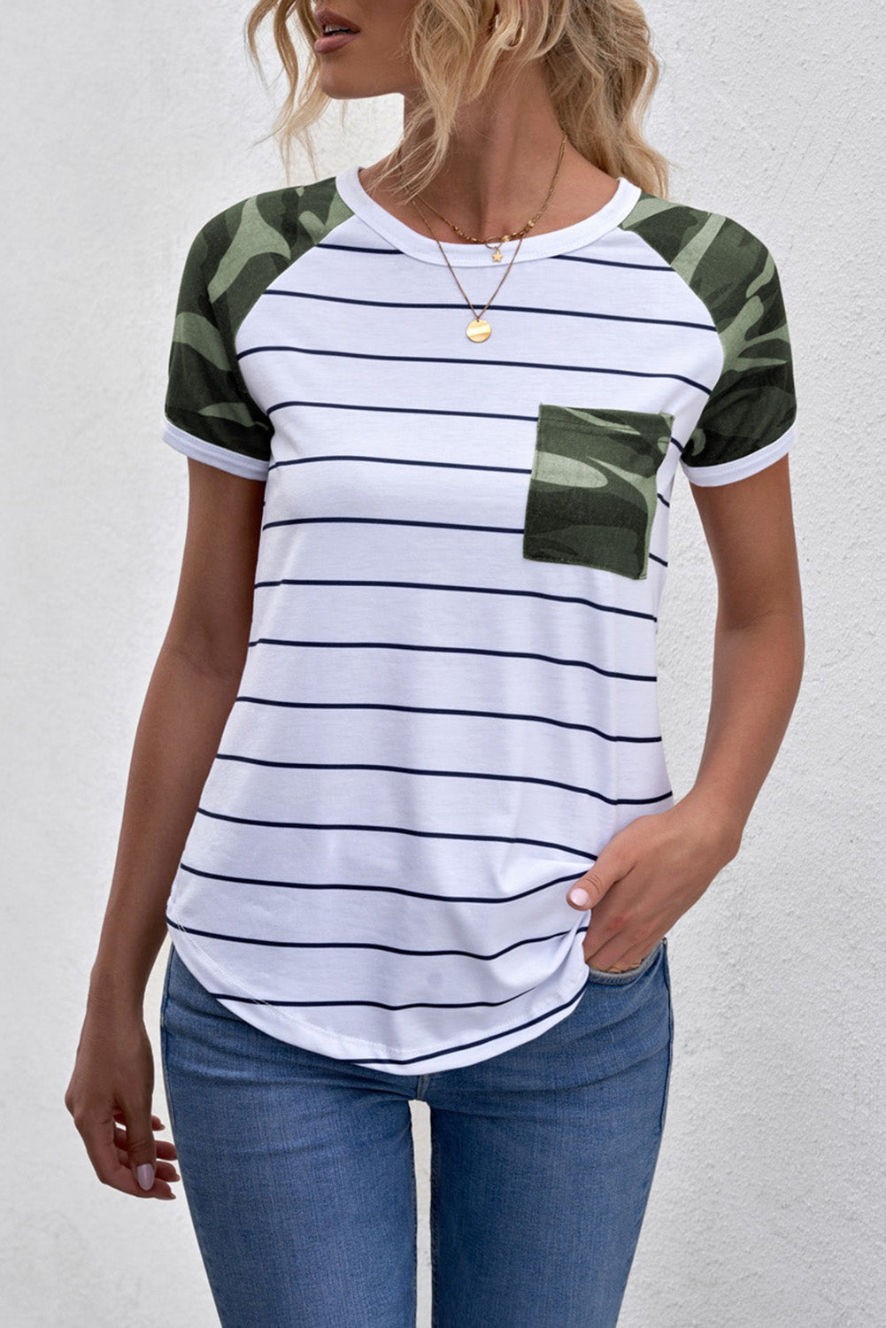 This Striped Leopard Pocketed Patch Tee is the perfect addition to your wardrobe.