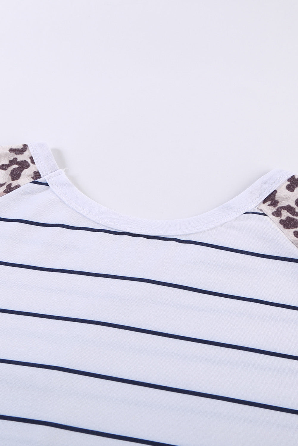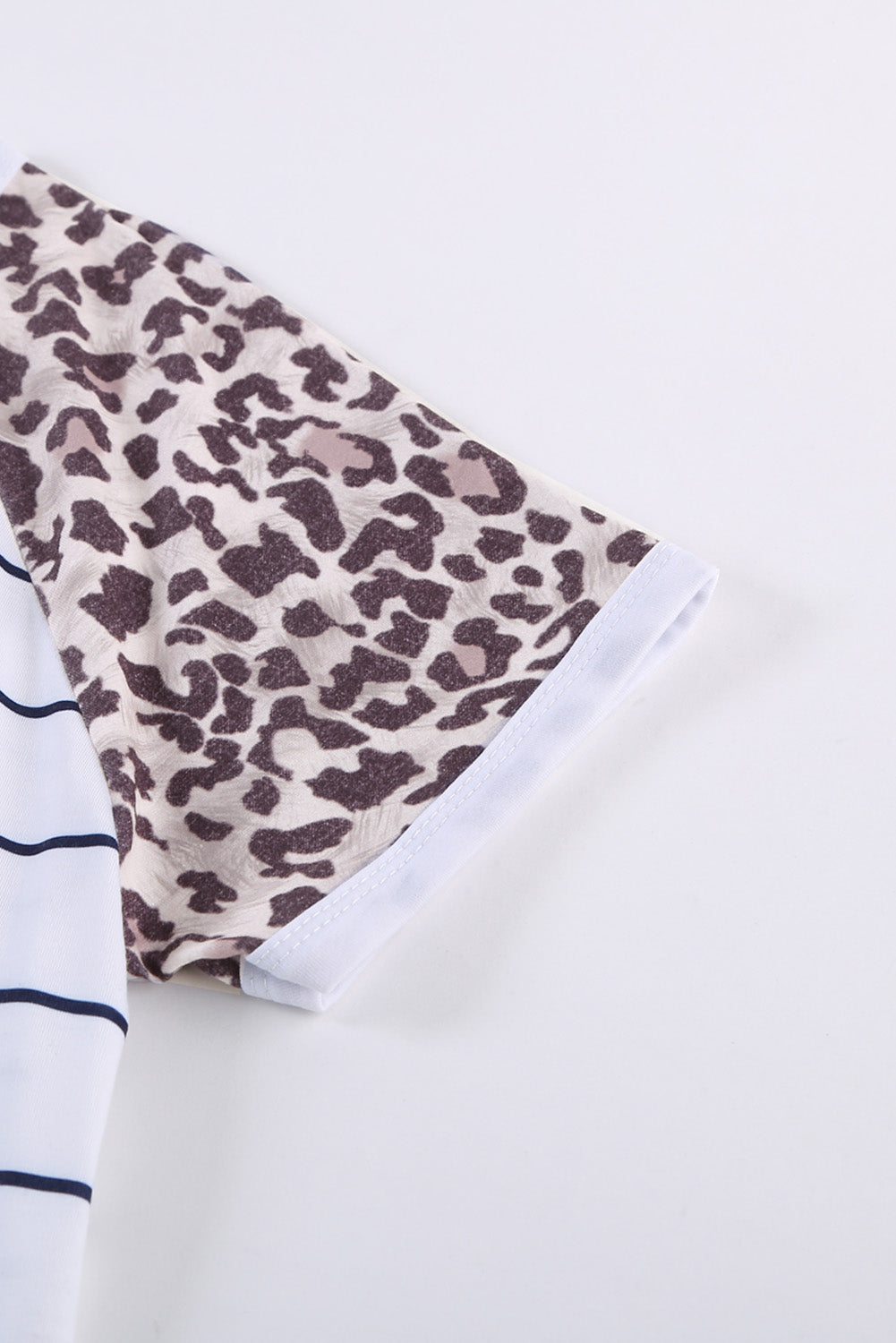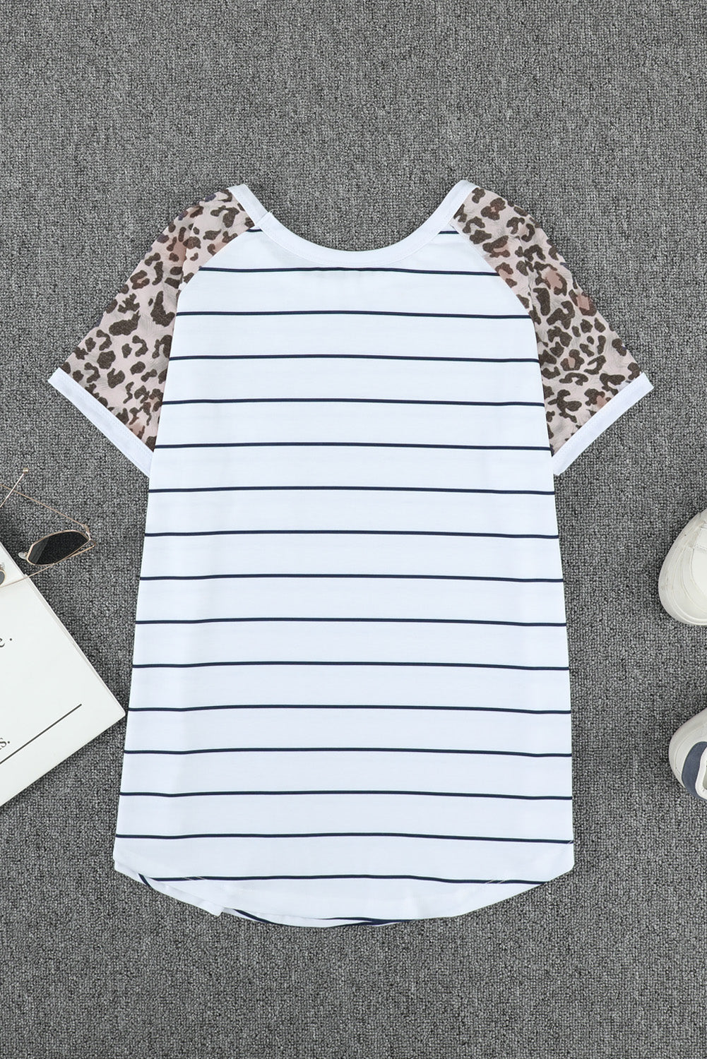 With its unique style and comfortable fit. this Striped Leopard Pocketed Patch Tee is a must-have for any fashionista.