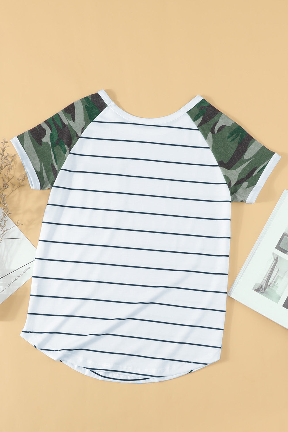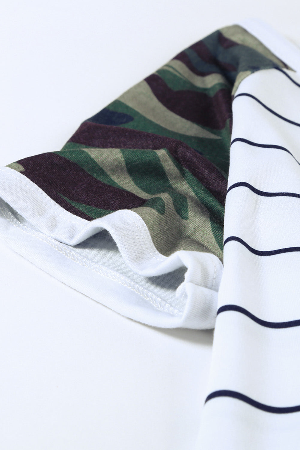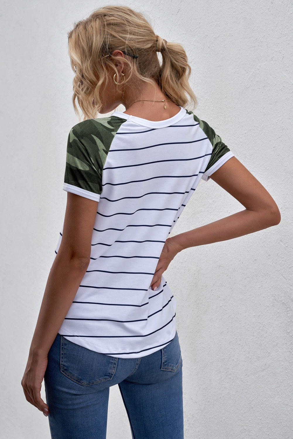 With its unique style and comfortable fit. this Striped Leopard Pocketed Patch Tee is a must-have for any fashionista.