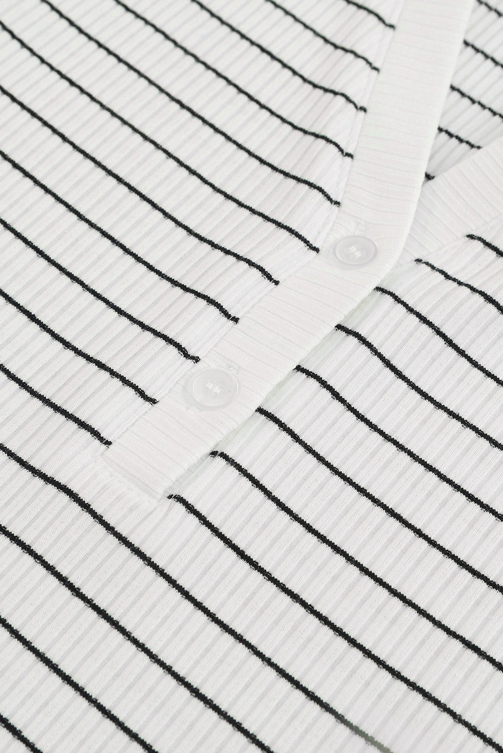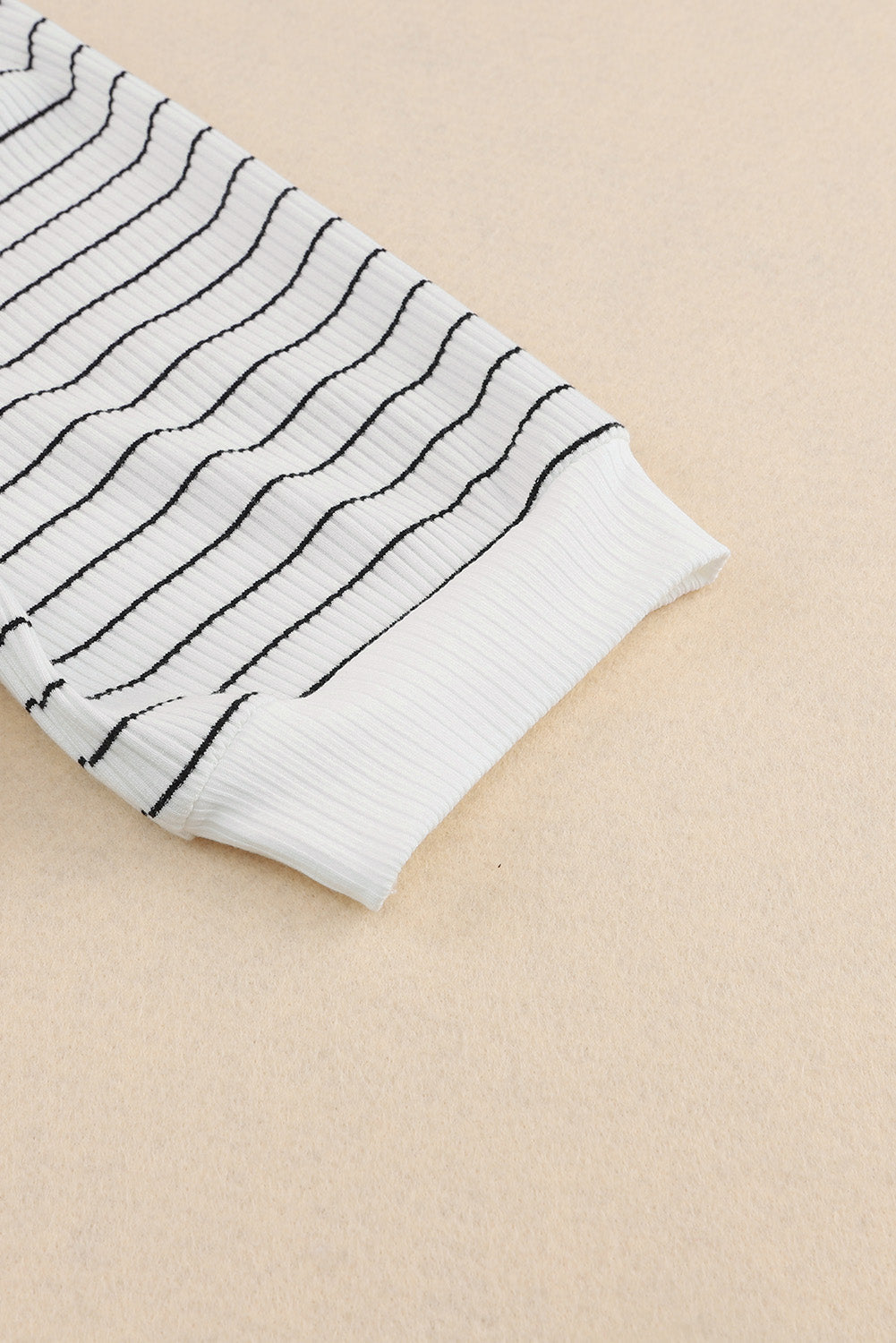Featuring a flattering V-neck design and bold striped print. this top seamlessly blends style and comfort for a look that is both chic and effortlessly casual.
