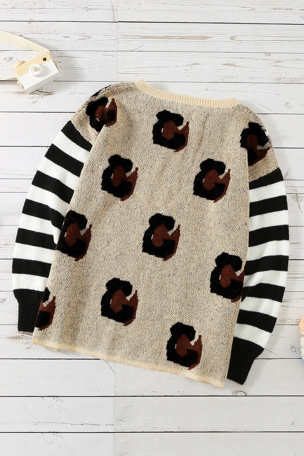 Introducing the Striped Sleeves Patchwork Leopard Sweater! This stylish and unique sweater is perfect for any occasion.