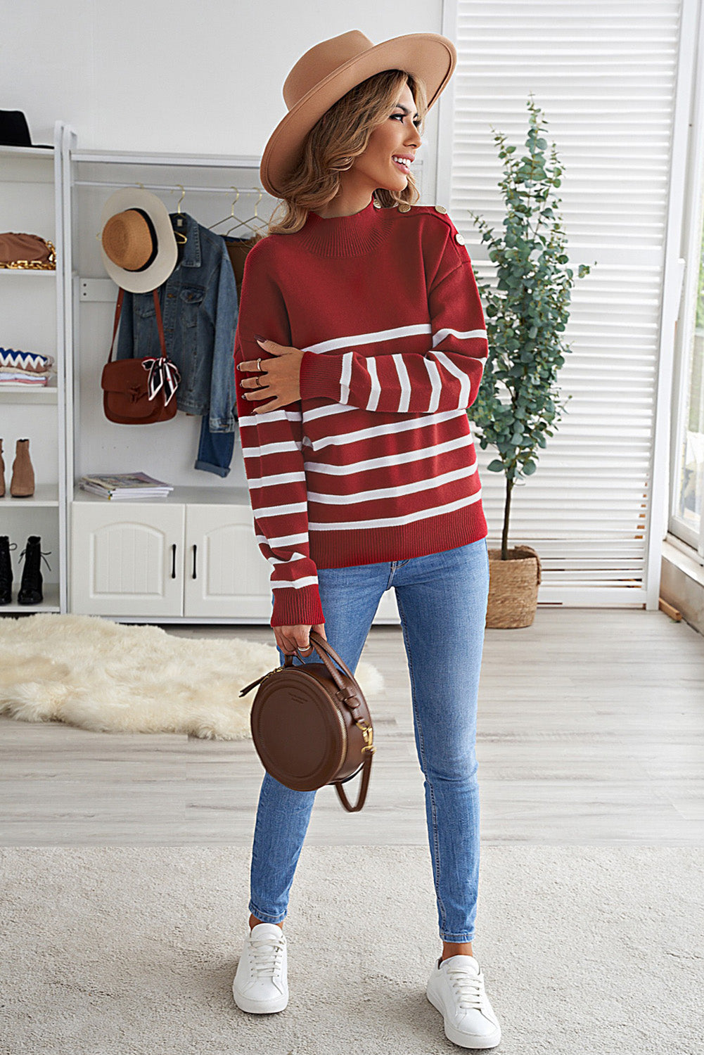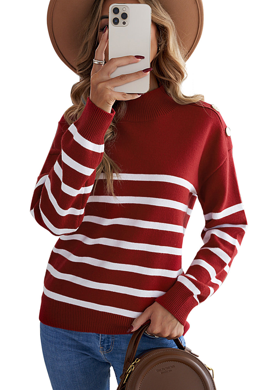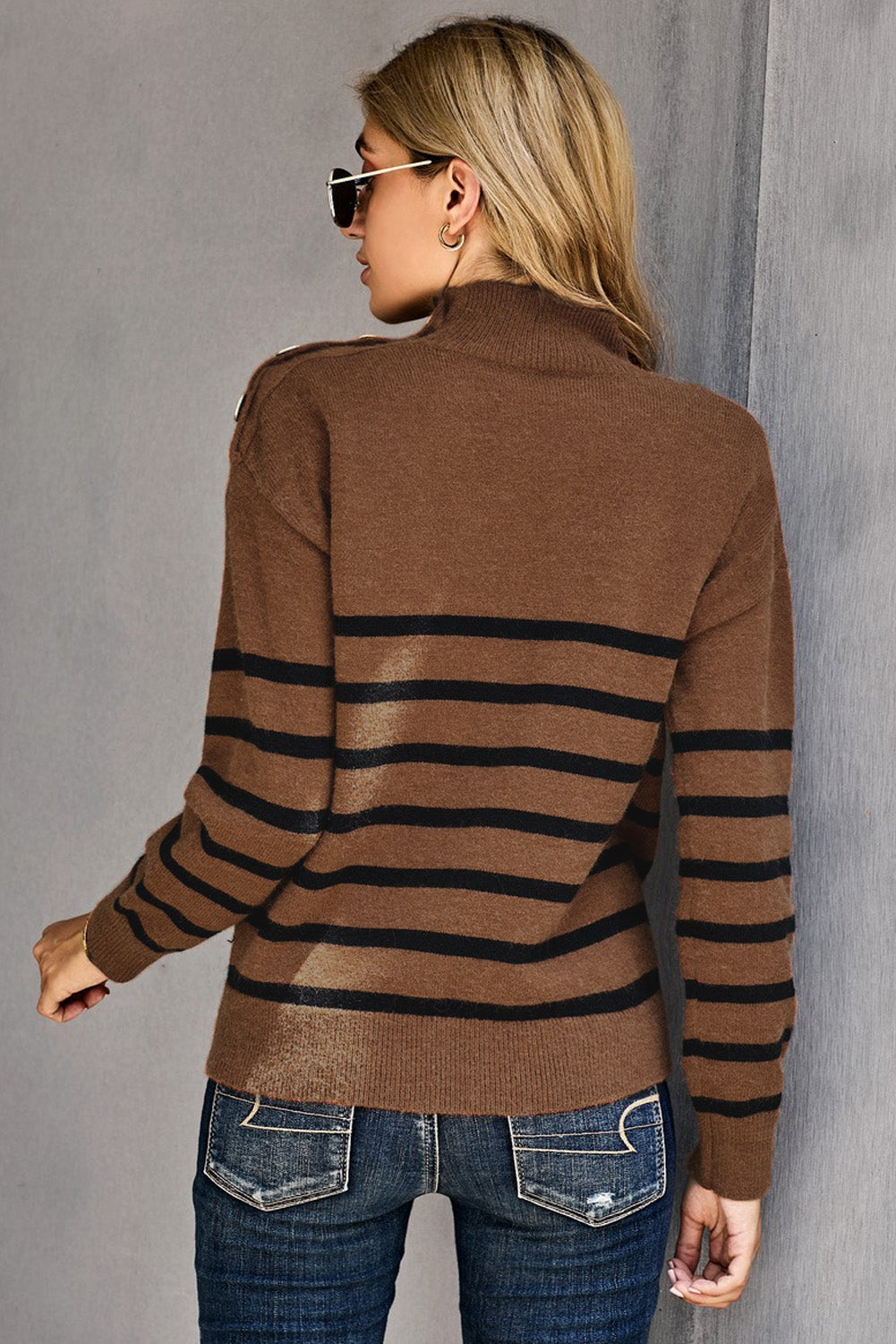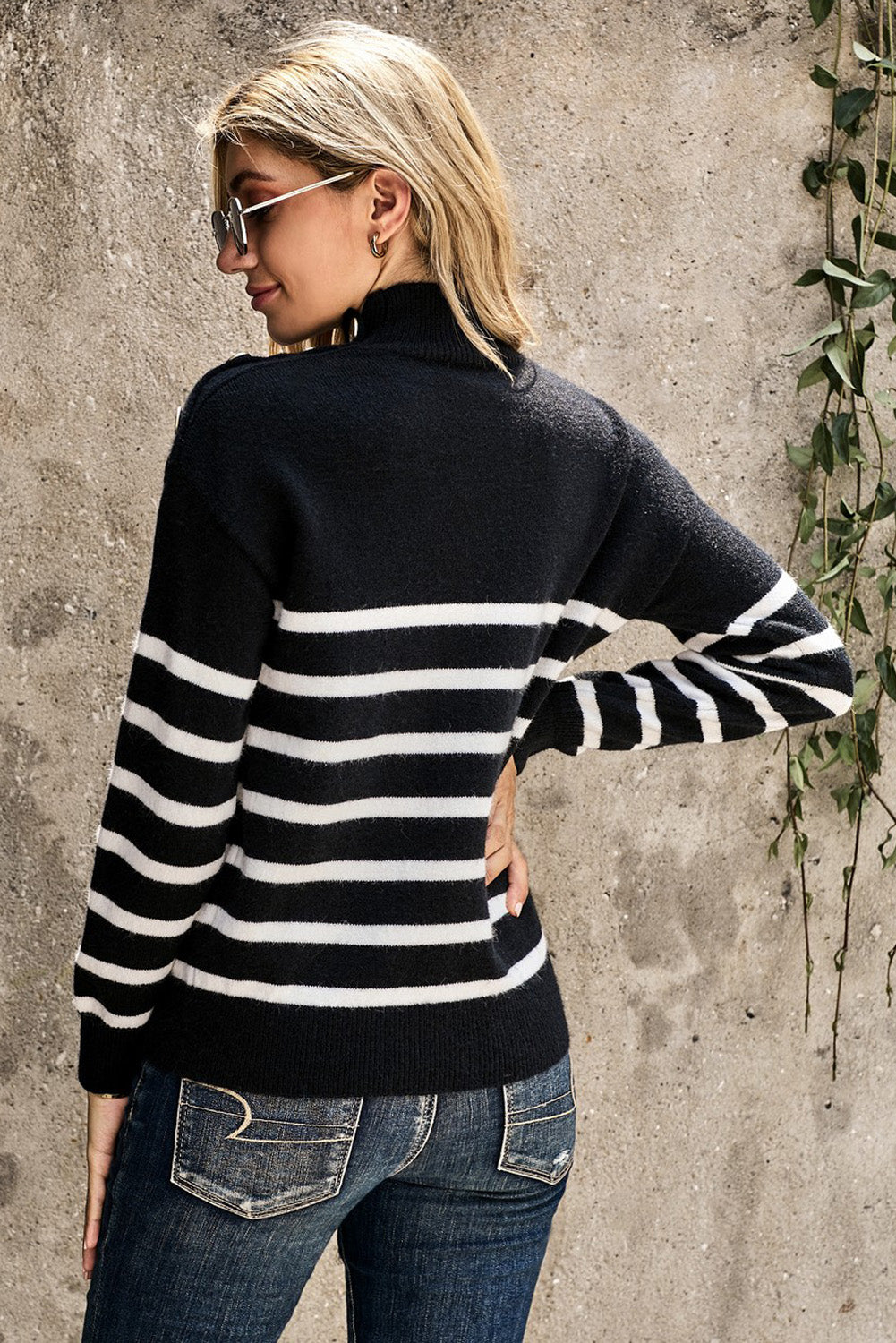 This Striped Turtleneck Long Sleeve Sweater With Buttons is the perfect addition to your wardrobe.