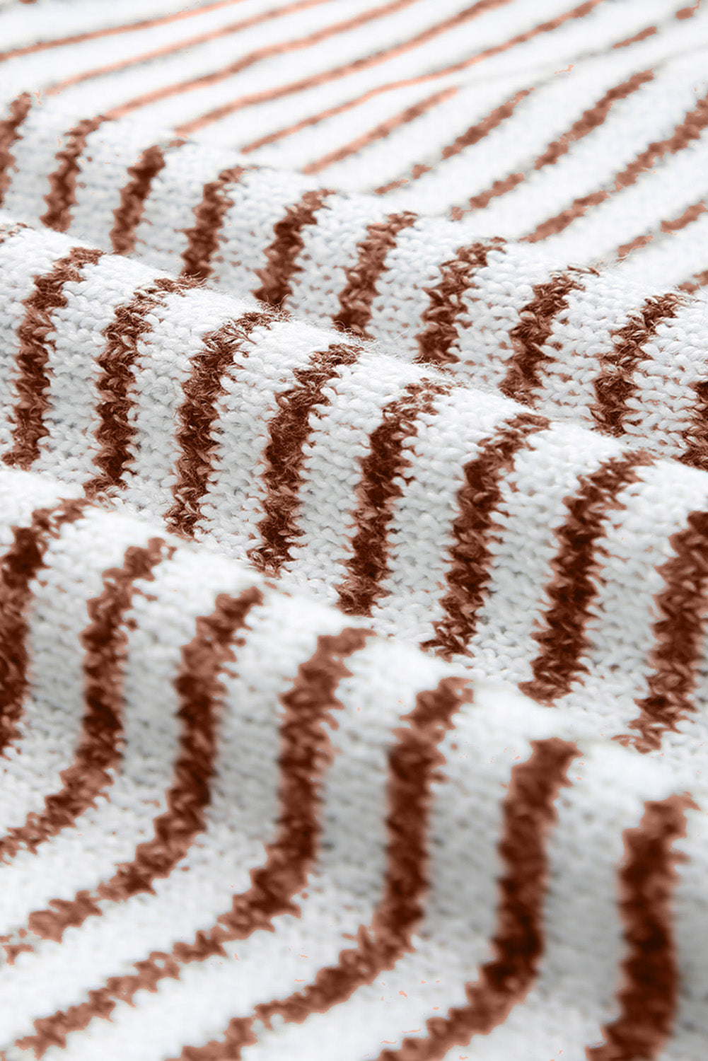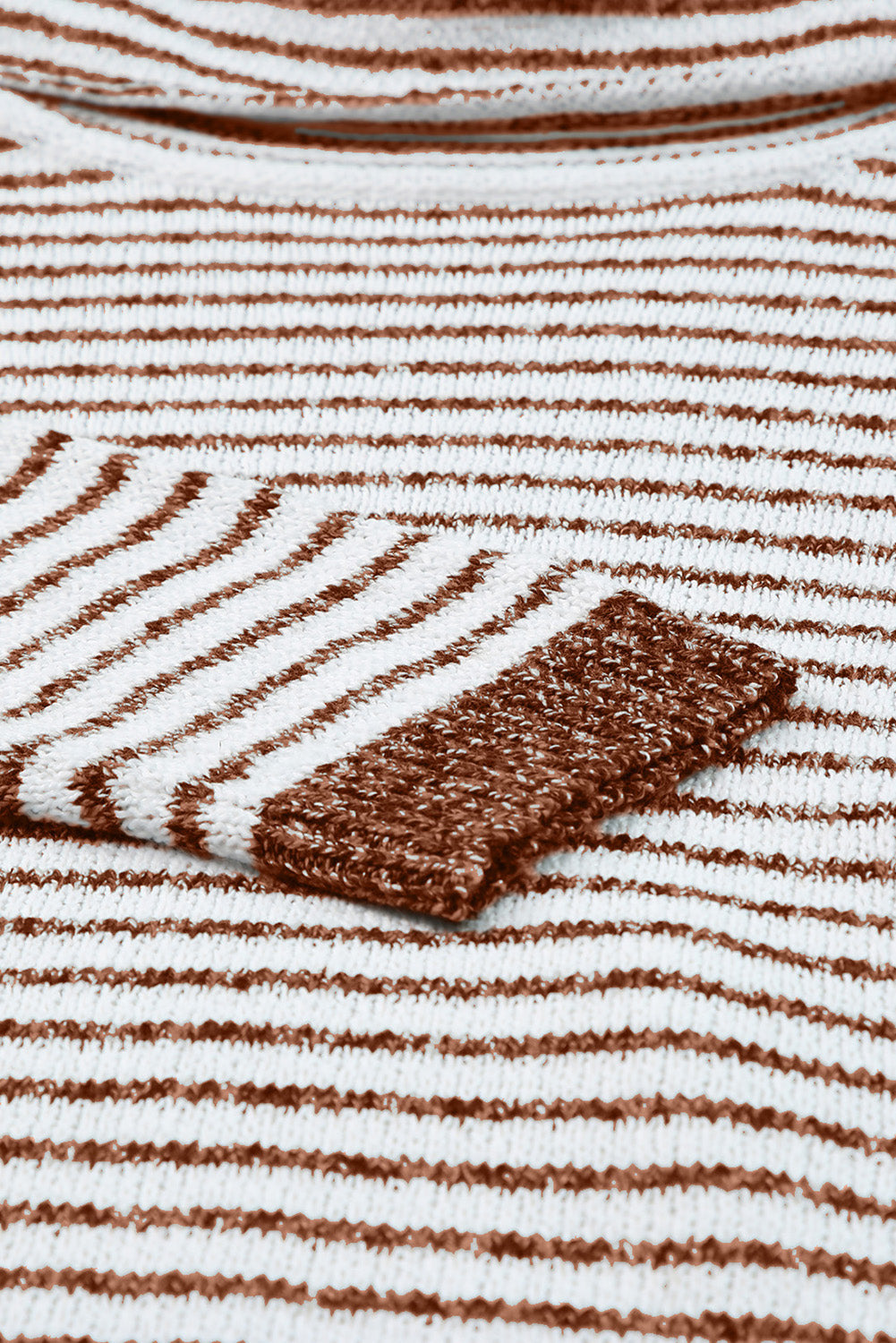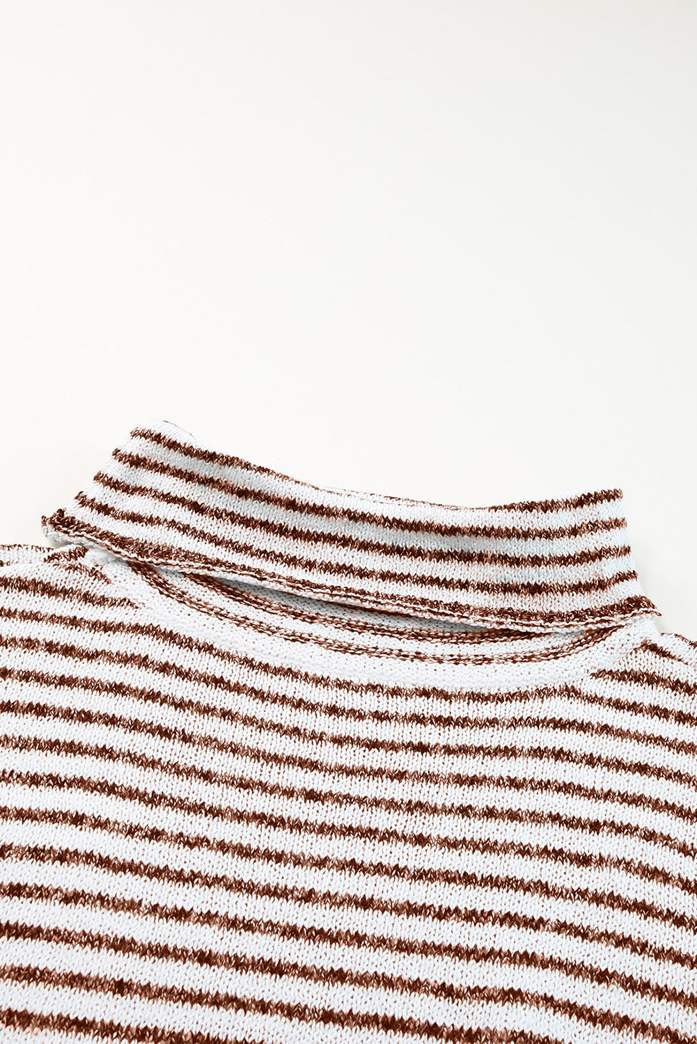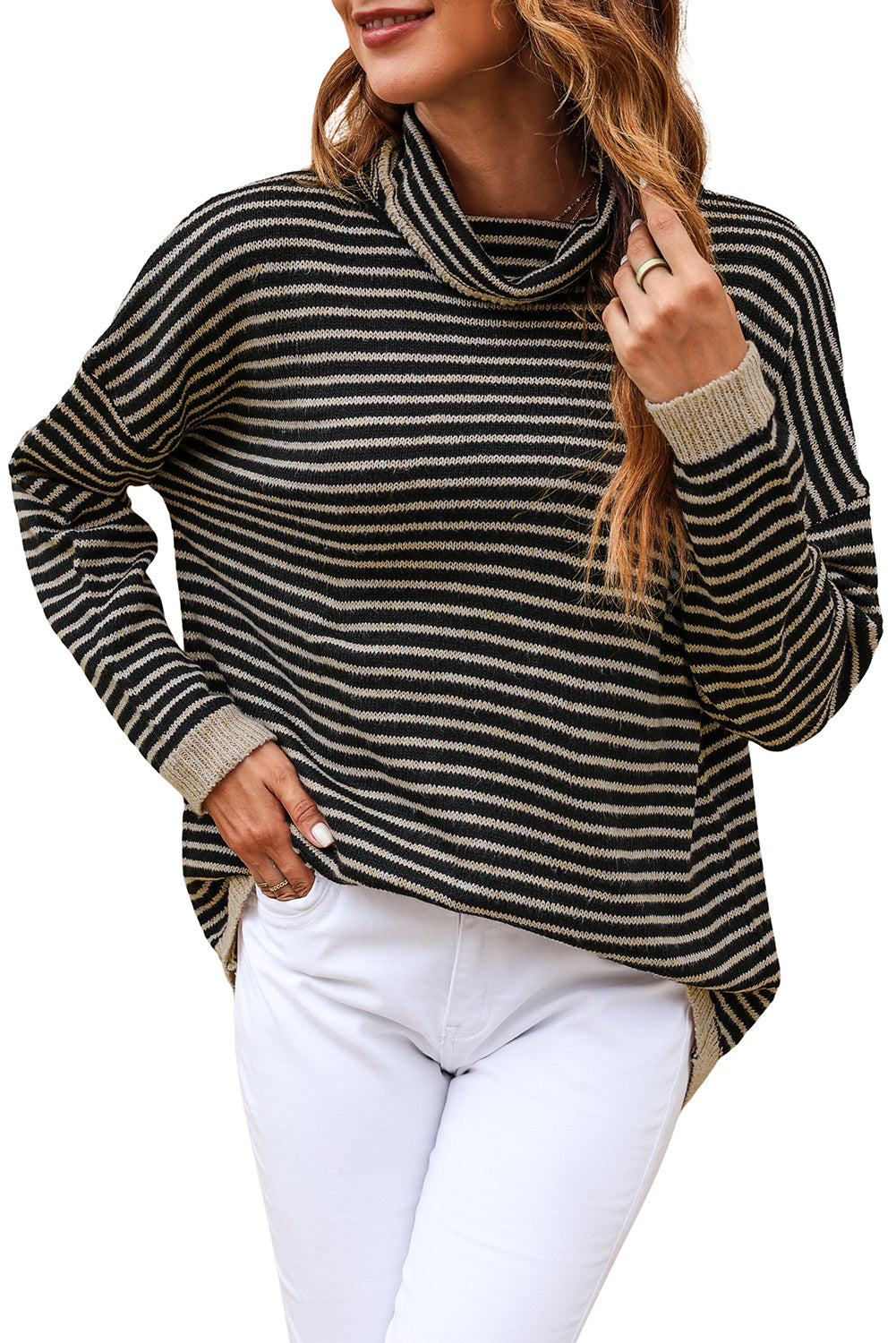 Get cozy in style this season with our Striped Turtleneck Loose Sweater. Made with 100% Polyester. this loose-fitting sweater combines ultimate comfort with the timeless appeal of classic stripes.