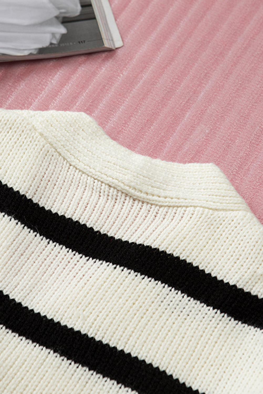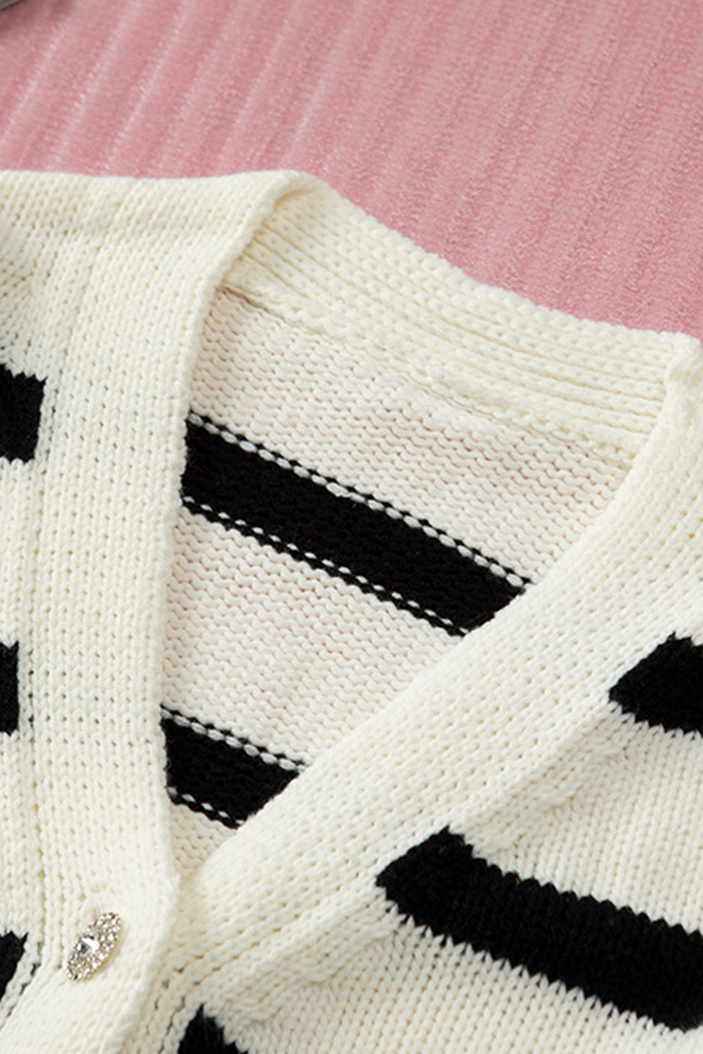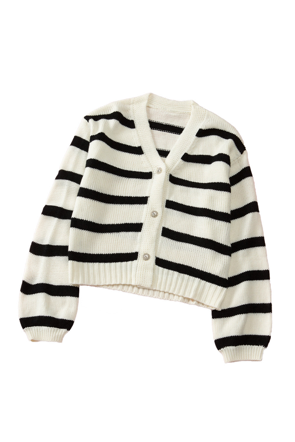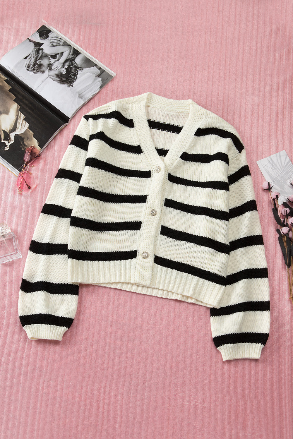 This Striped V-Neck Buttoned Open Front Knitted Sweater is the perfect addition to your wardrobe.
