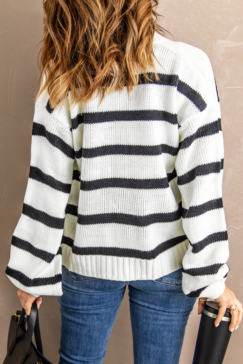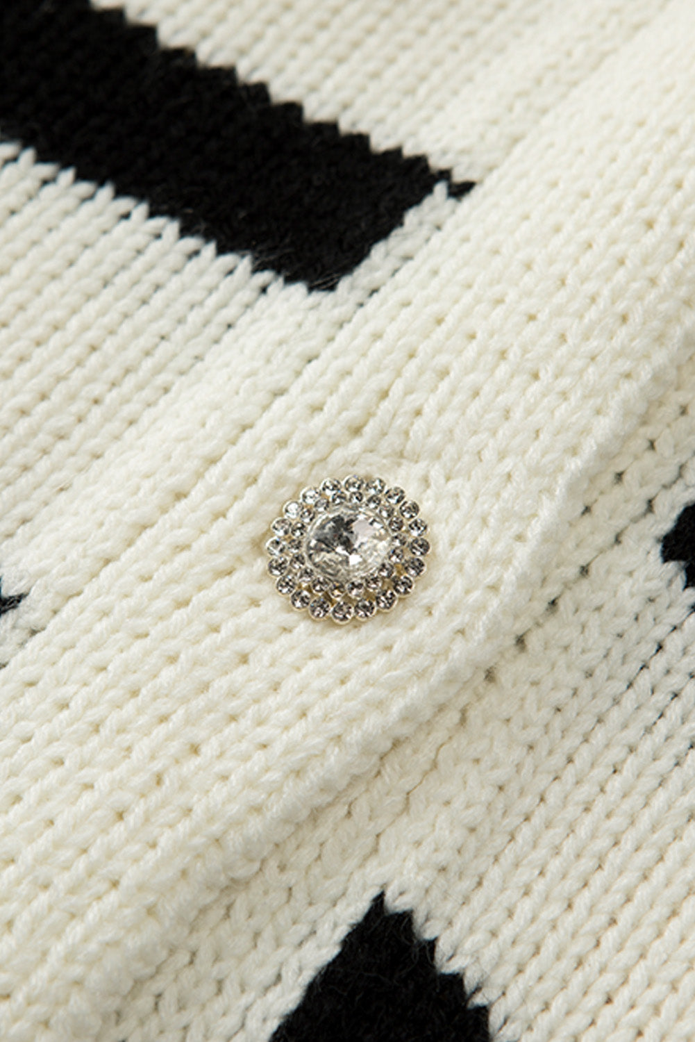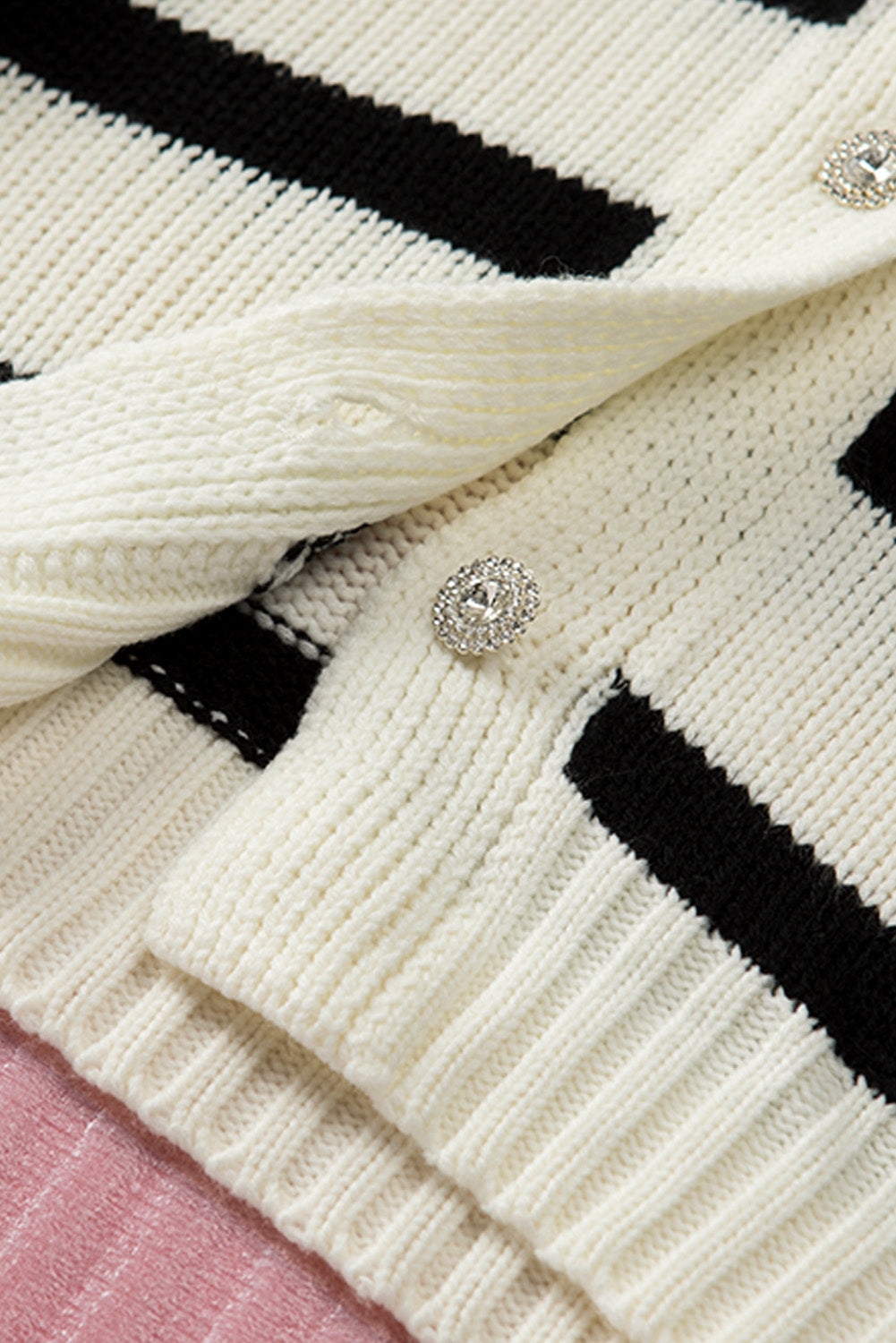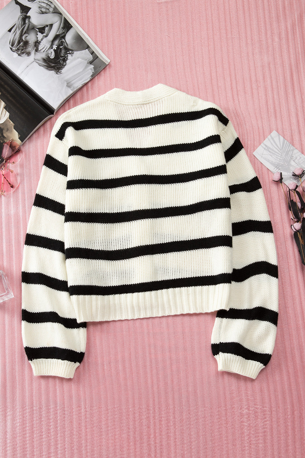 This Striped V-Neck Buttoned Open Front Knitted Sweater is the perfect addition to your wardrobe.