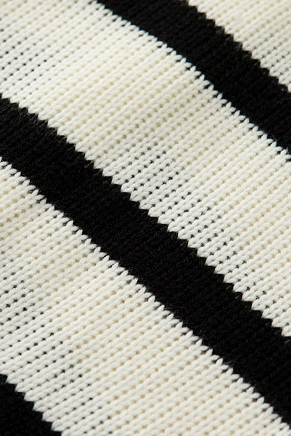 Whether you're heading to the office or out for a night on the town. this Striped V-Neck Buttoned Open Front Knitted Sweater is the perfect choice.