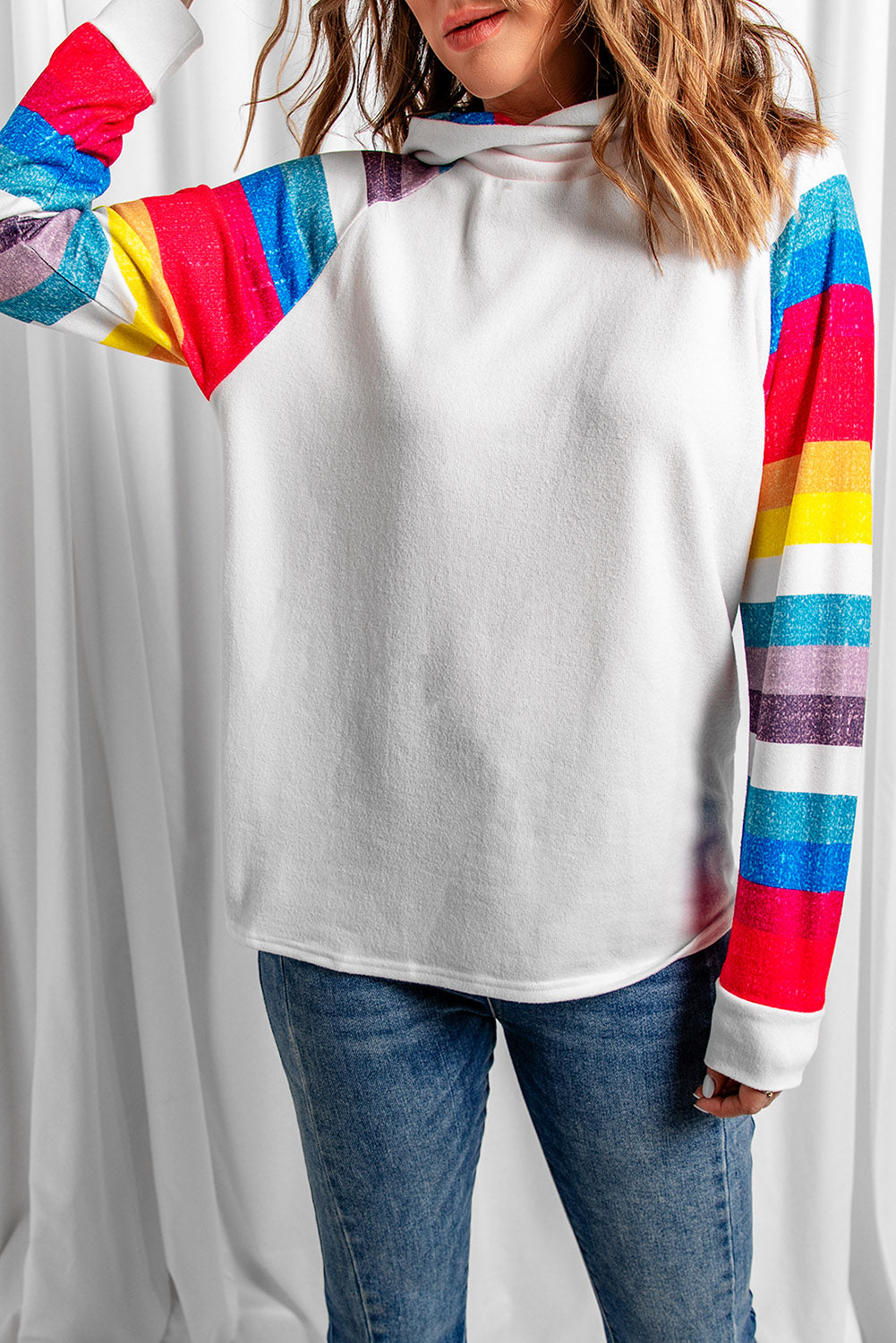 Look stylish and feel comfortable in this Stripes Long Sleeve Patchwork Ladies Hoodie.