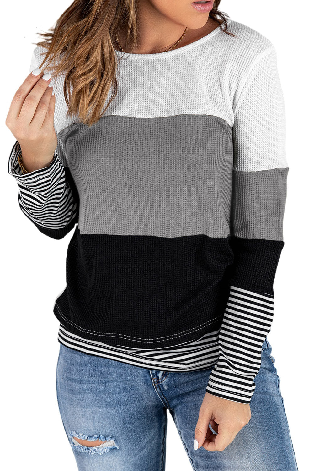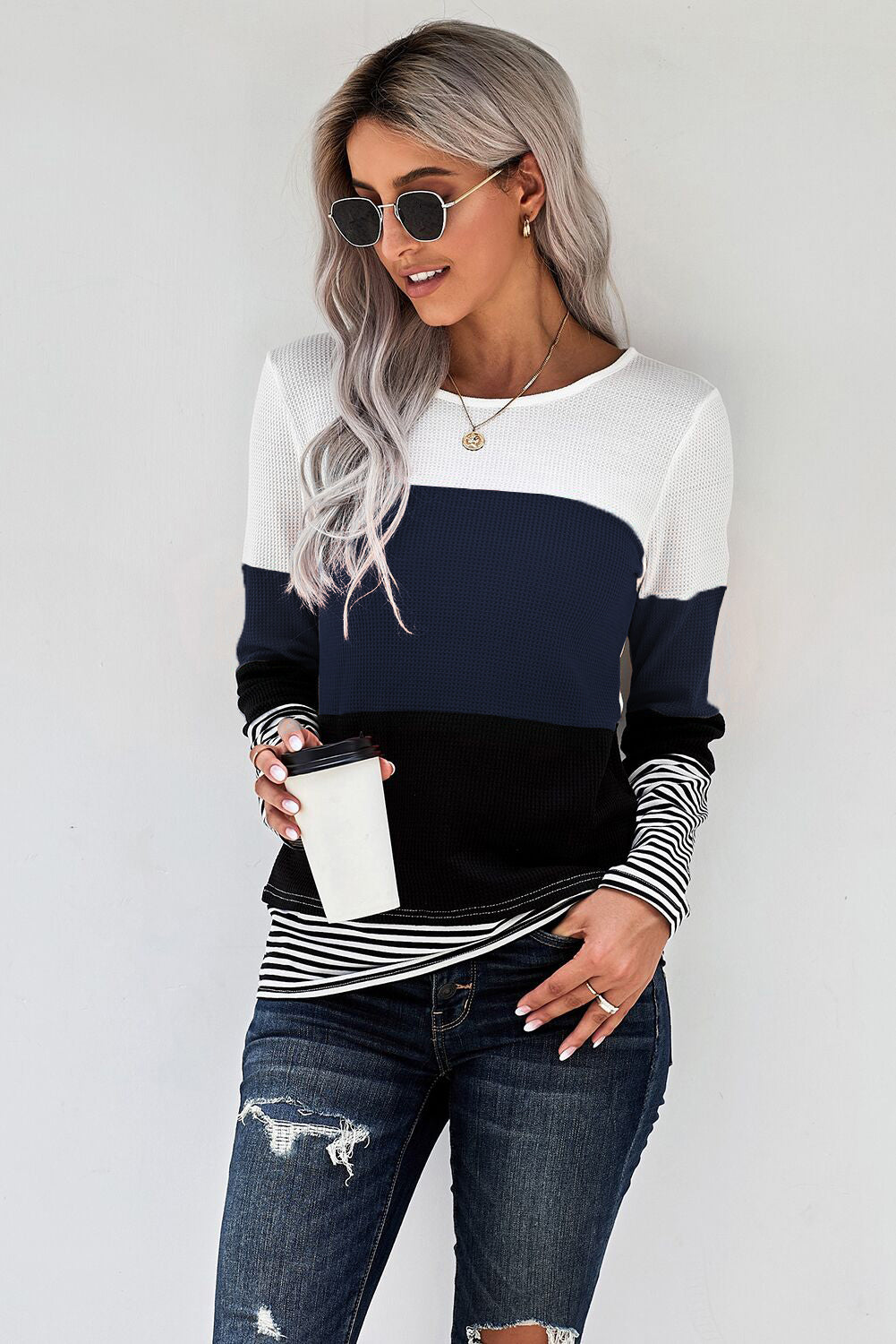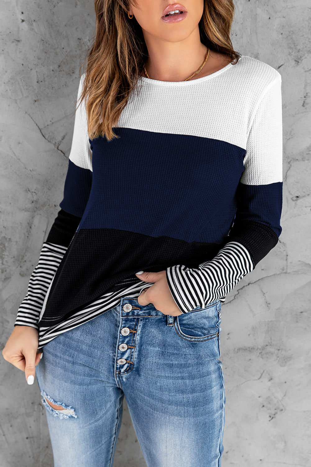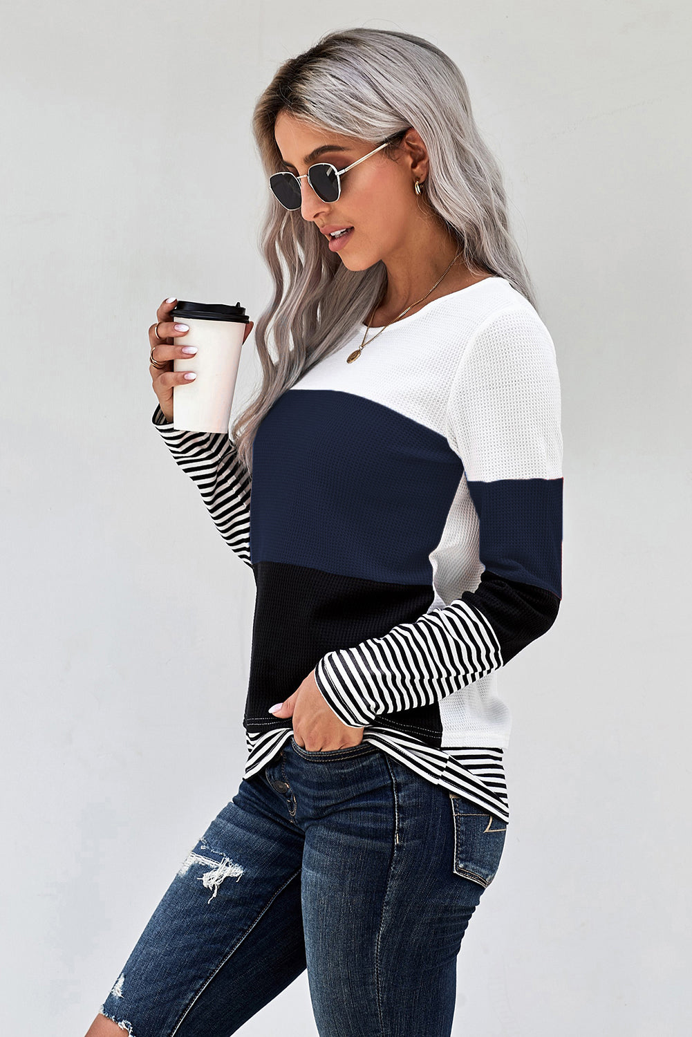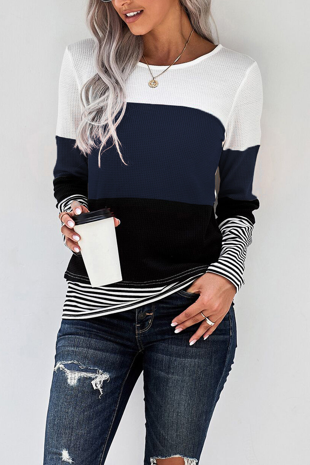 This Stylish Colorblock Splicing Stripes Top is a must-have for any fashionista.