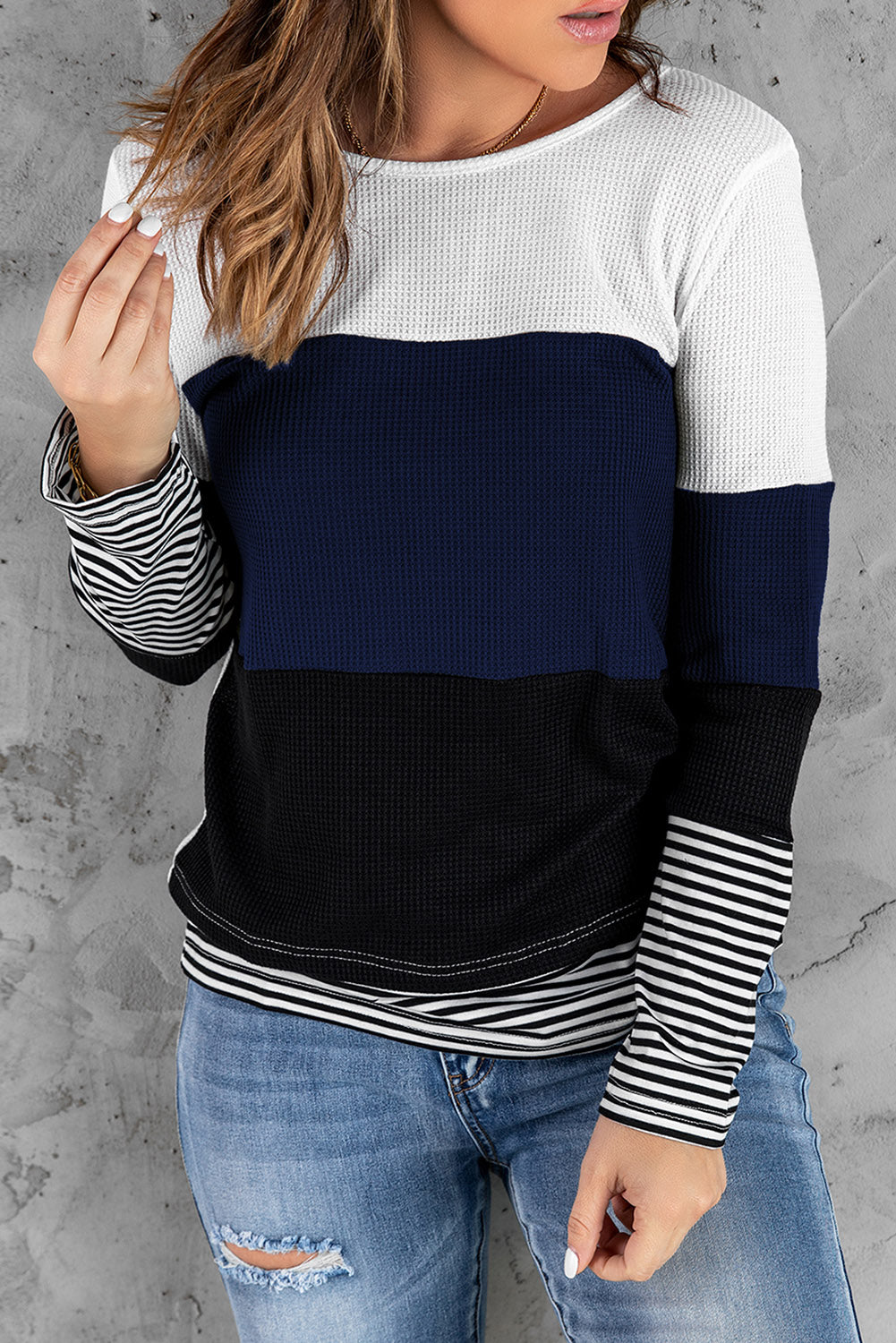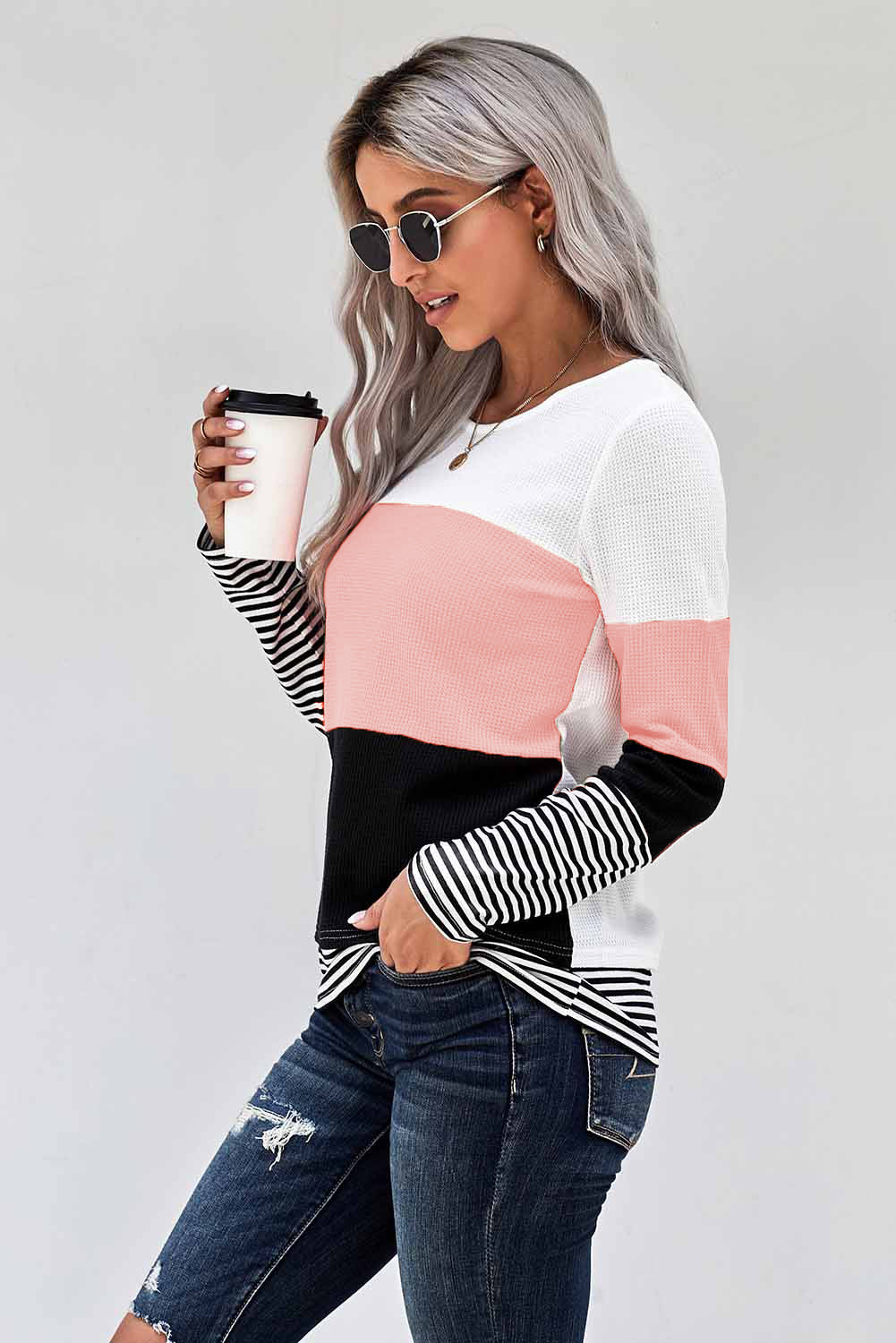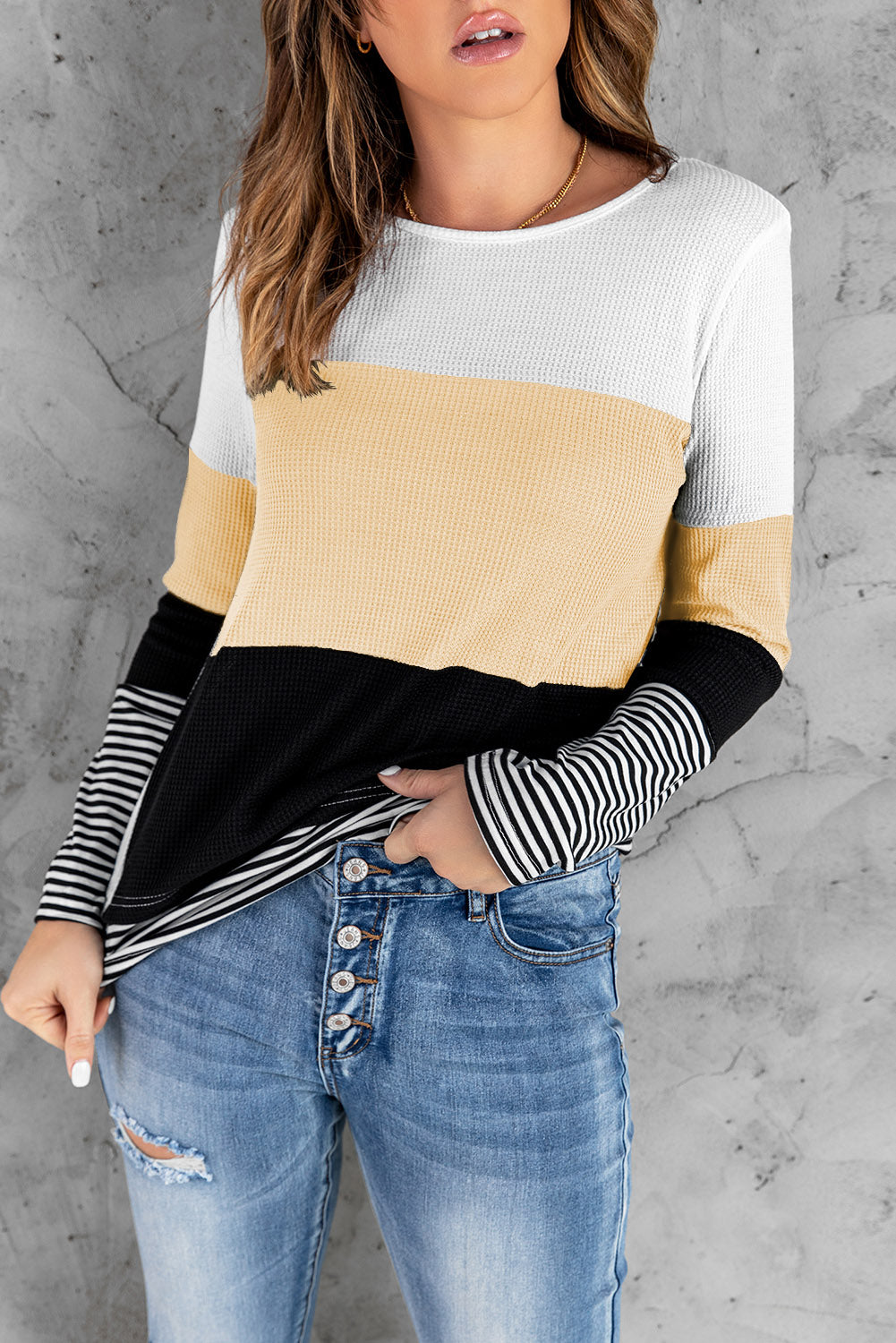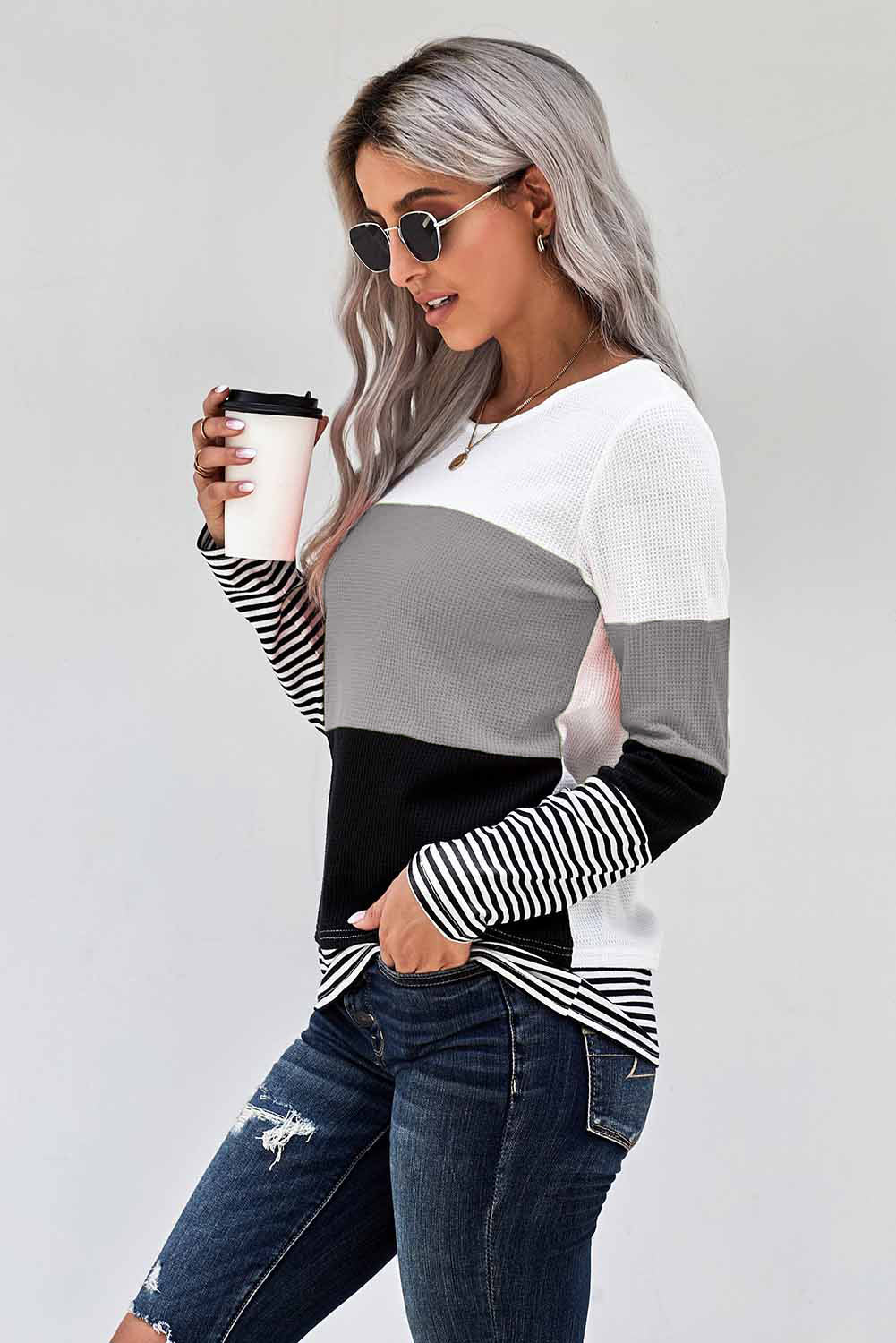 This Stylish Colorblock Splicing Stripes Top is a must-have for any fashionista.