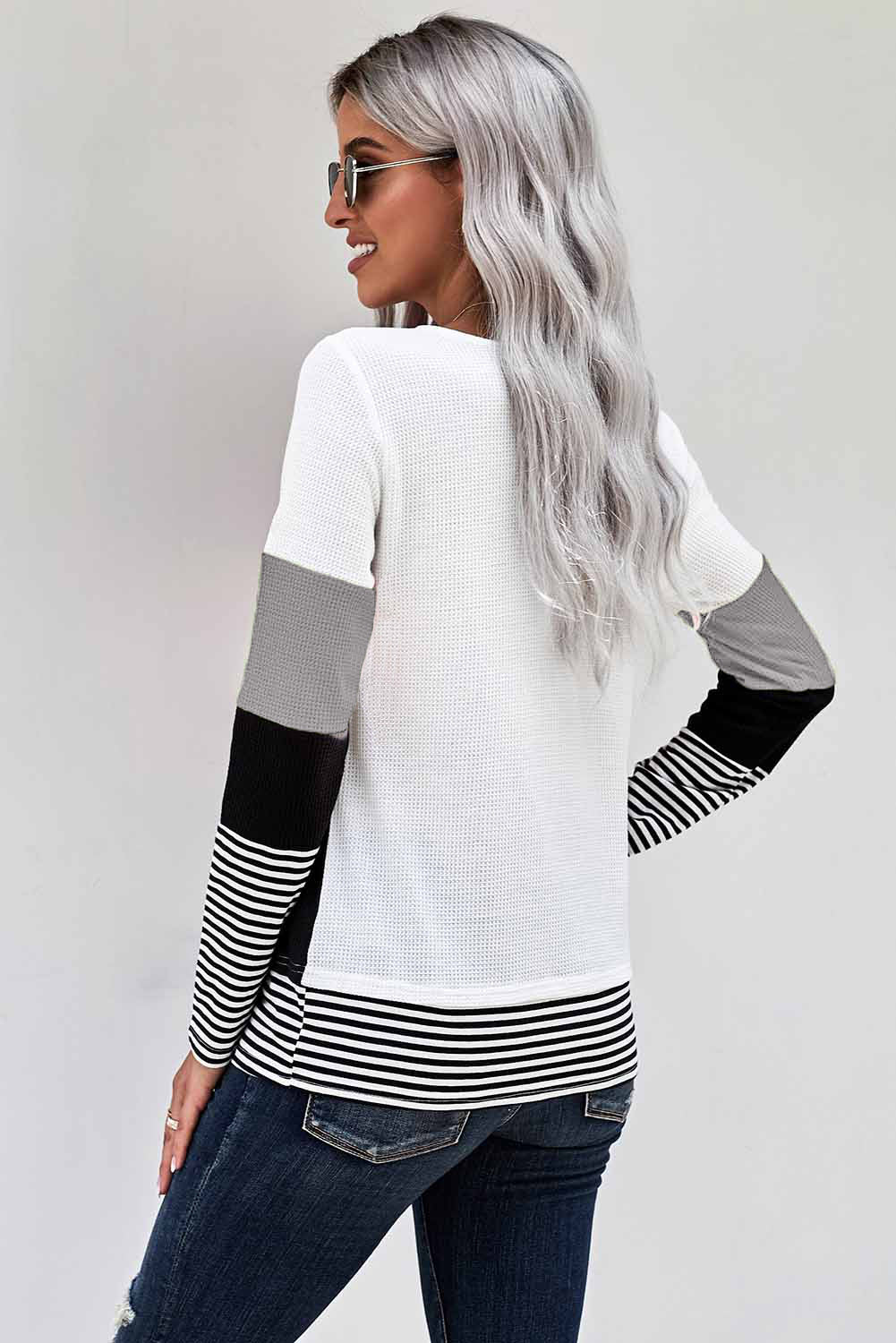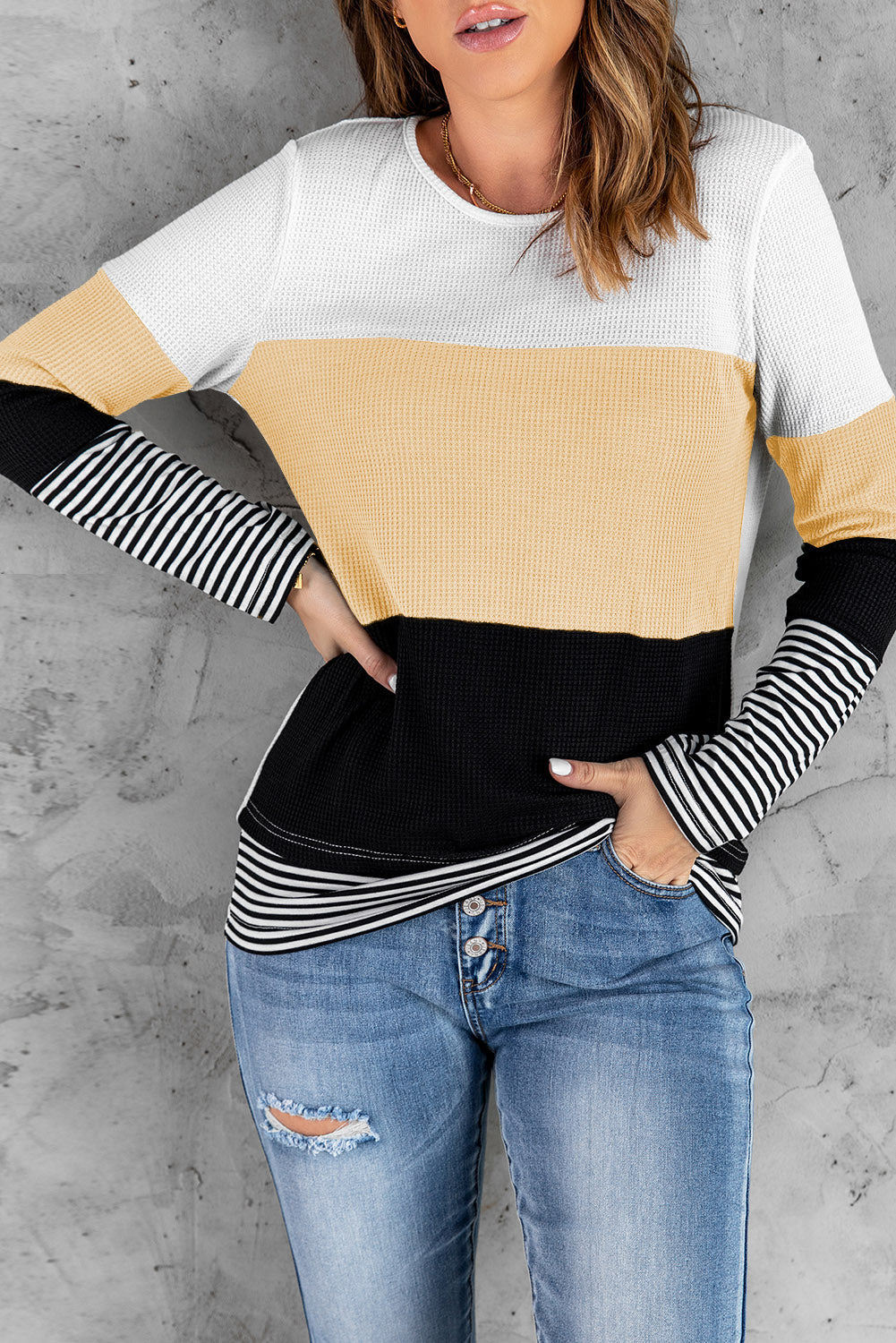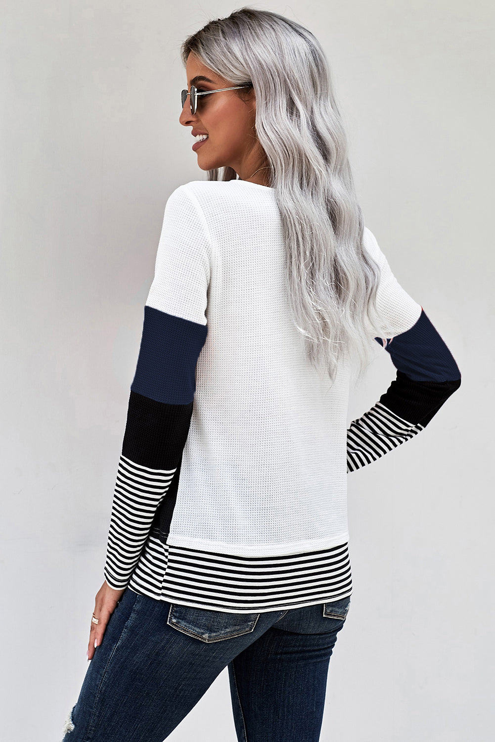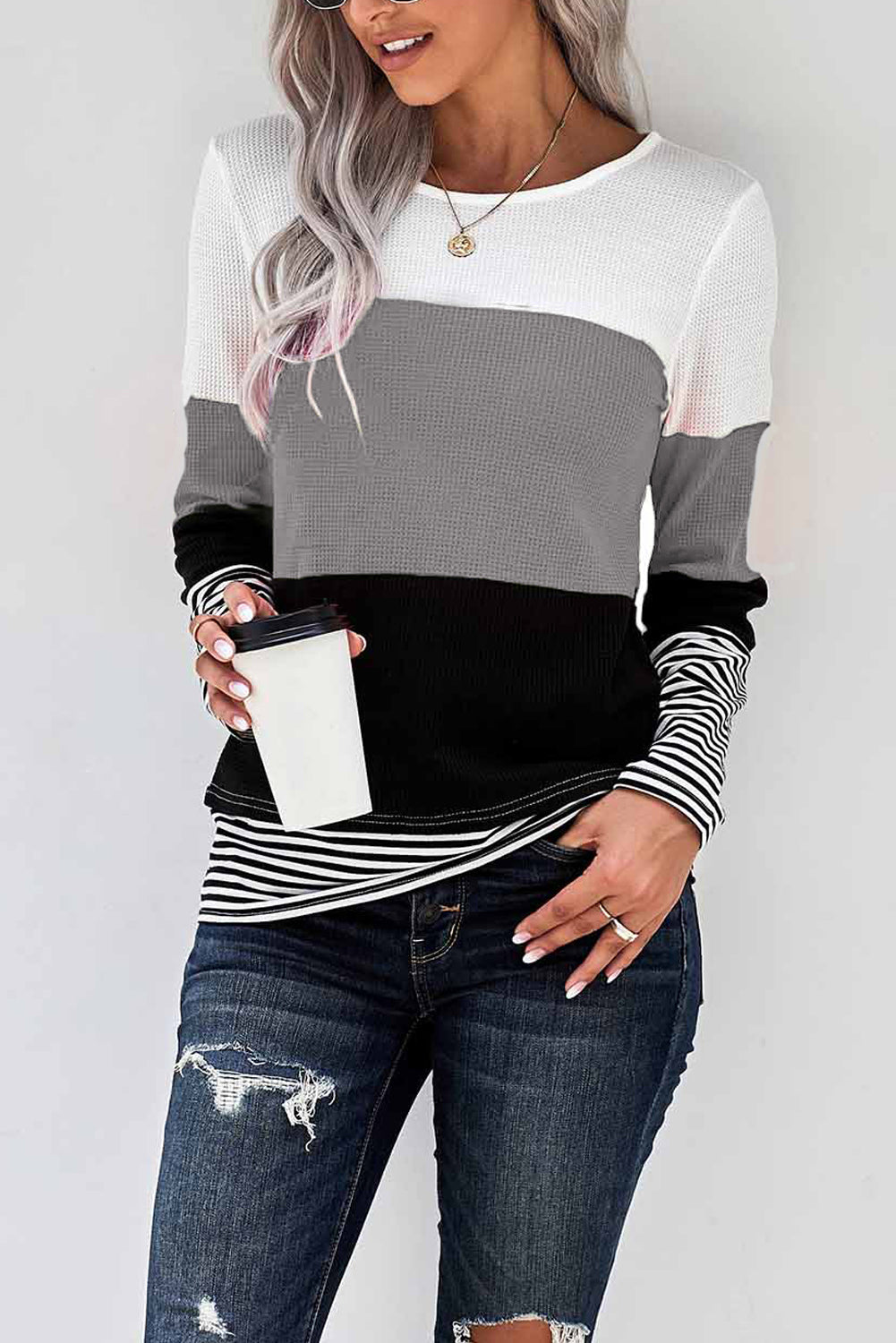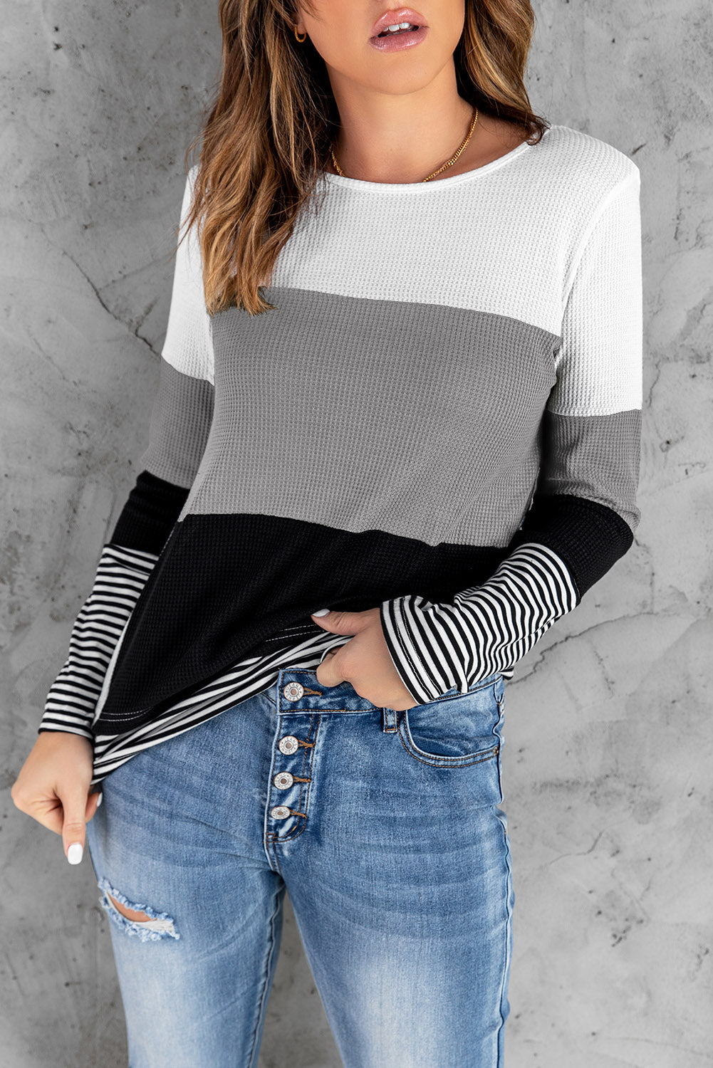 This Stylish Colorblock Splicing Stripes Top is a must-have for any fashionista.
