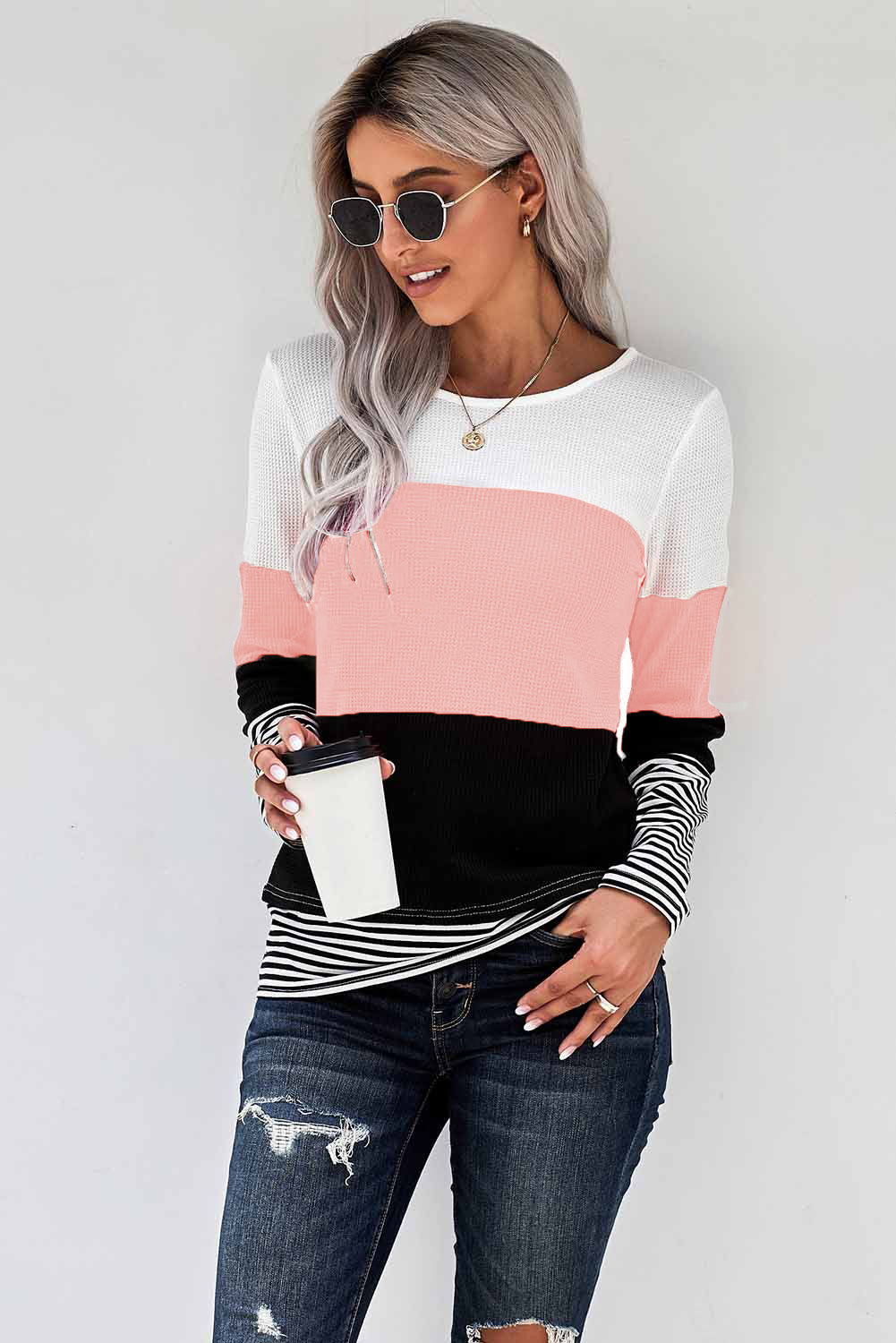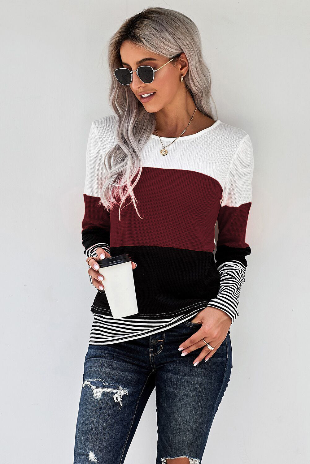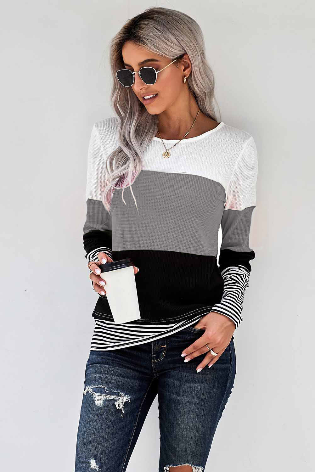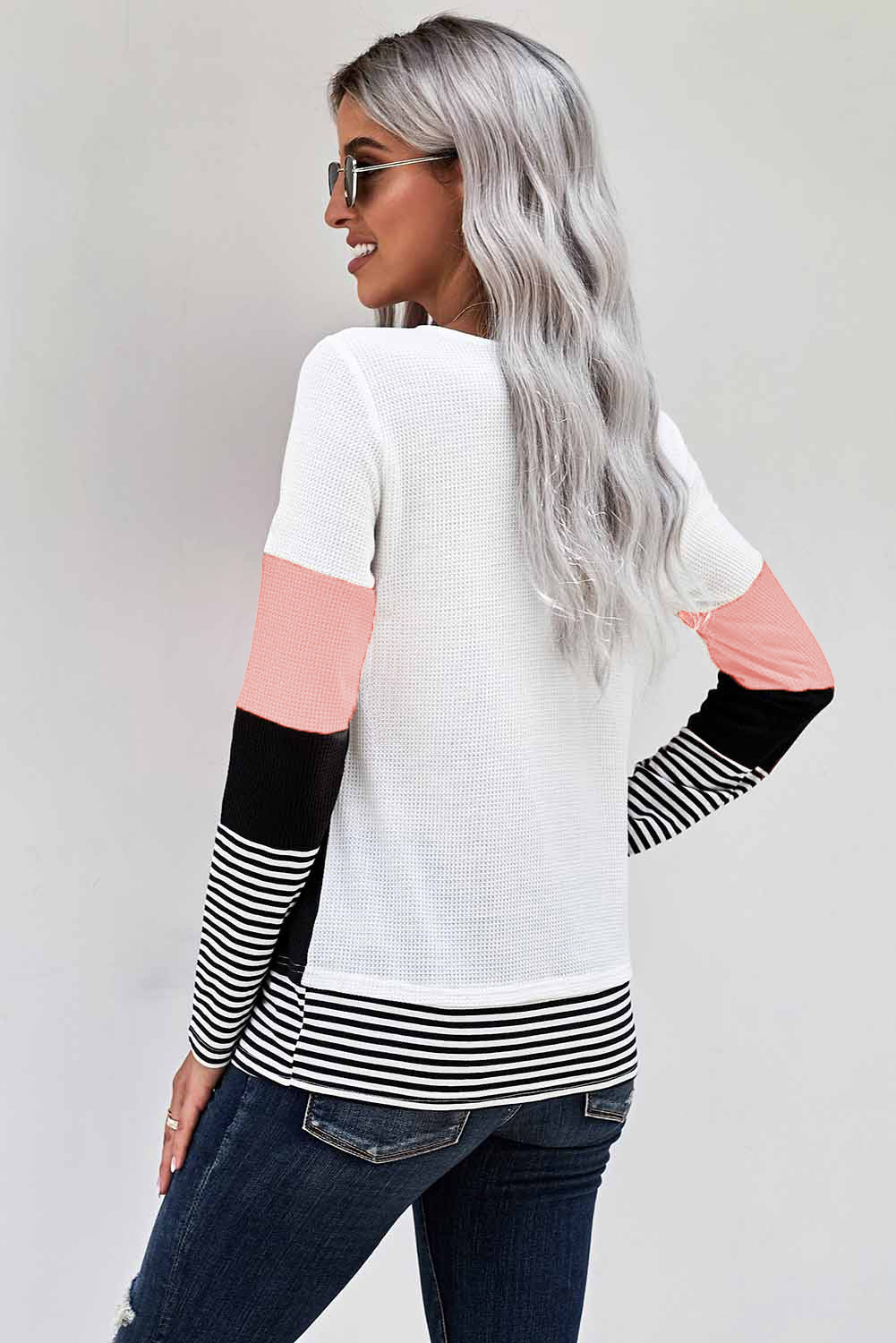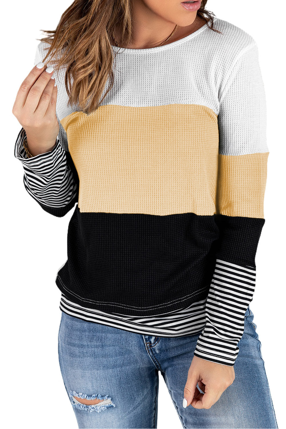 This Stylish Colorblock Splicing Stripes Top is a must-have for any fashionista.