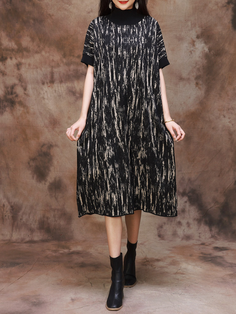 Elevate your fashion game with our Women's Camouflage Half Collar Knitted Midi Dress. Luxuriously crafted from imported ecological cashmere. merino wool. anti-pilling fiber. and spandex. this dress offers the perfect blend of comfort and style. Available in a sophisticated color palette of dark coffee. black. and coffee green. it boasts a modern half turtleneck collar and short sleeves. The middle waist design ensures a flattering fit. With a length of 110cm and a bust of 140cm. this one-size-fits-most midi dress effortlessly combines elegance and versatility. Embrace a new level of chic with this unique. camouflage-inspired creation.