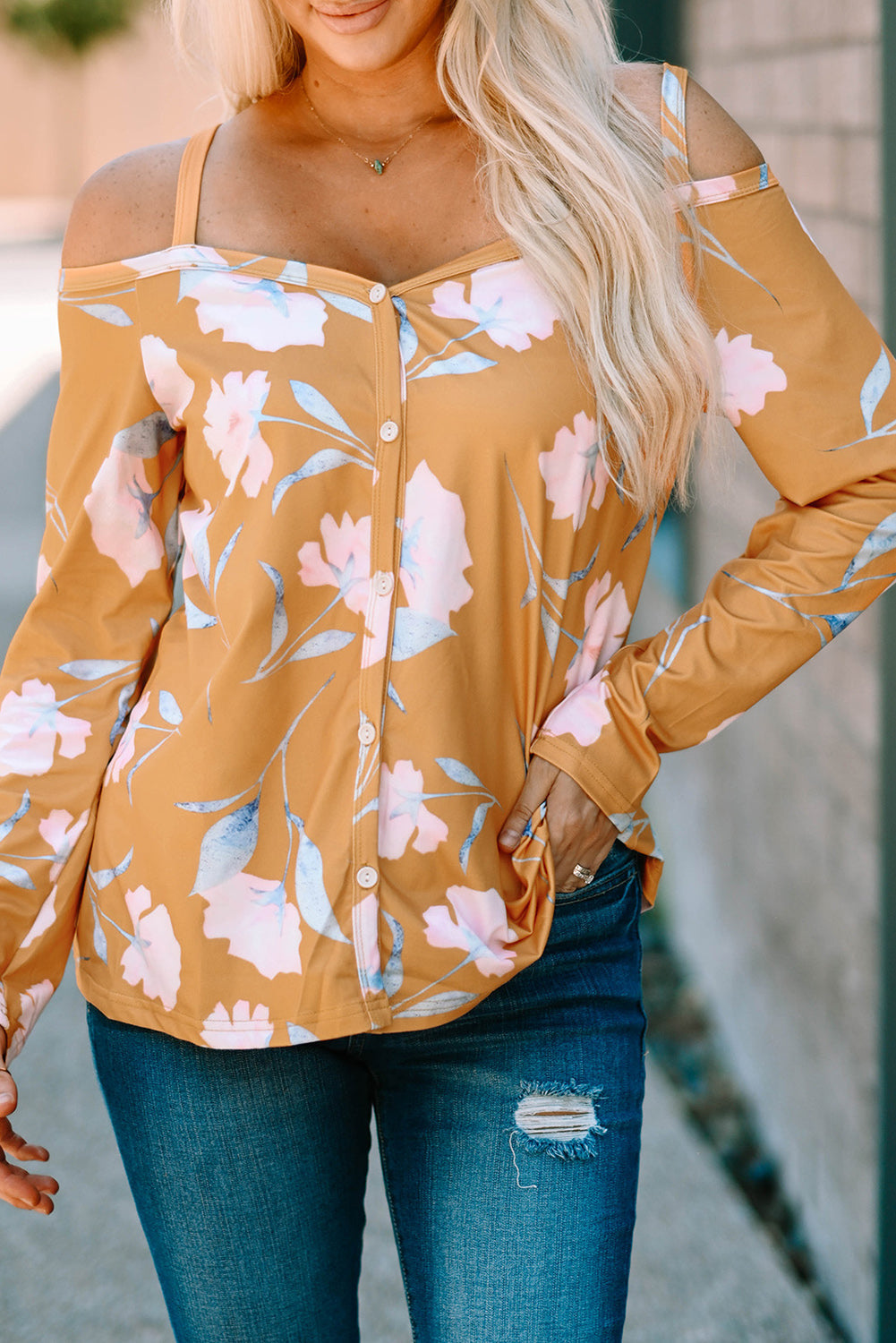 This Yellow Cold Shoulder Long Sleeve Floral Top is the perfect addition to your wardrobe.